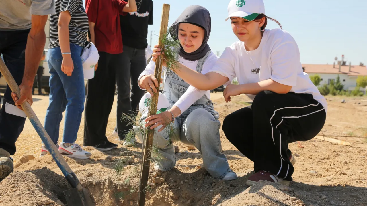 Konya'da Meram Belediyesi Gençlik Meclisi, yaz aylarında artan orman yangınlarına dikkat çekmekiçin anlamlı bir etkinlik gerçekleştirdi. ‘Ormanlar Yanmasın, Umutlar Yeşersin’ sloganıyla düzenlenen fidan dikim etkinliğiyle Meramlı gençler doğaya umut ekti, geleceğe nefes oldu.KONYA (İGFA) - Meram Belediyesi Gençlik Meclisi, yaz aylarında artan orman yangınlarına karşı sessiz kalmadı. Bu kapsamda Meramlı gençler, Alakova Mahallesi’nde ‘Ormanlar Yanmasın, Umutlar Yeşersin’ sloganıyla fidan dikim etkinliği gerçekleştirdiler.