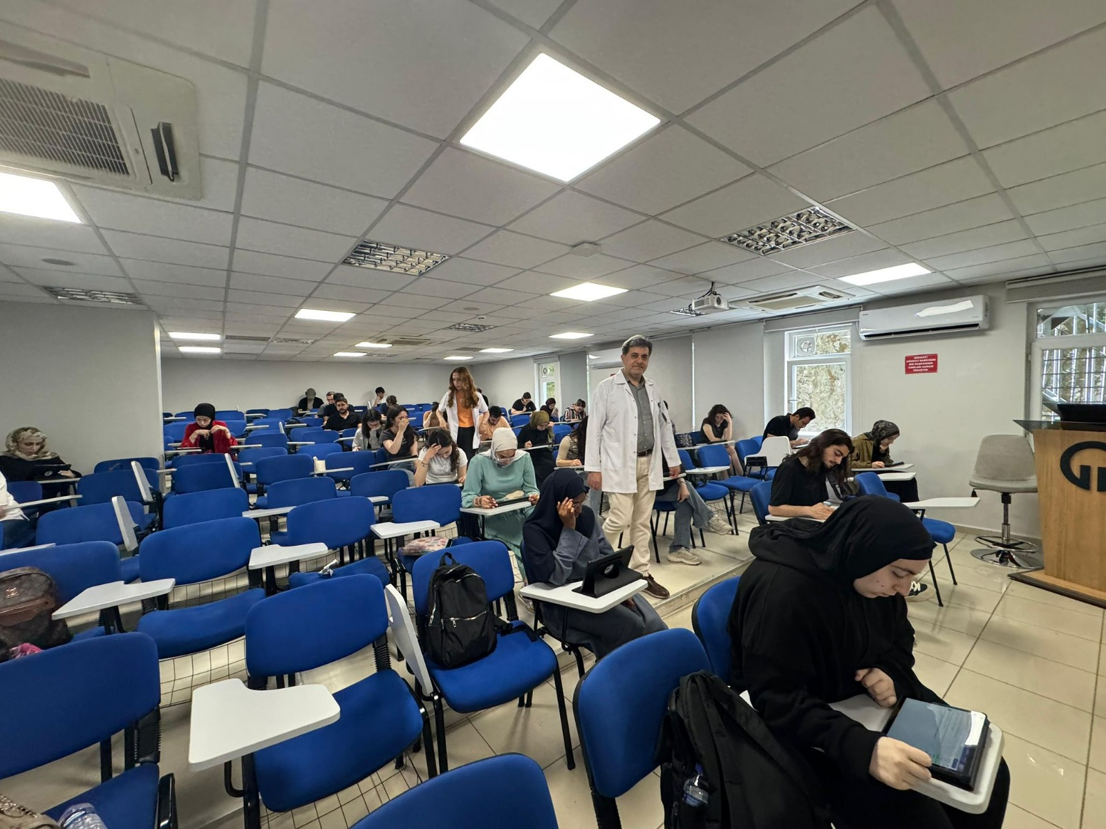 K Diş Hekimliği Fakültesi, 2024-2025 Eğitim-Öğretim Yılı Bahar Yarıyılı kapsamında başlattığı dijital sınav uygulaması ile hem çevresel sürdürülebilirliğe katkı sağladı hem de ölçme ve değerlendirme süreçlerinde verimlilik ve güvenliği artırmaya yönelik örnek bir modeli hayata geçirdi. Diş Hekimliği Fakültesi tarafından yürütülen çalışmalar kapsamında; sınav evraklarının basımı, arşivlenmesi ve kağıt israfı vb. süreçleri minimize etmek amacıyla dijital altyapı oluşturularak uygulama başlatıldı.