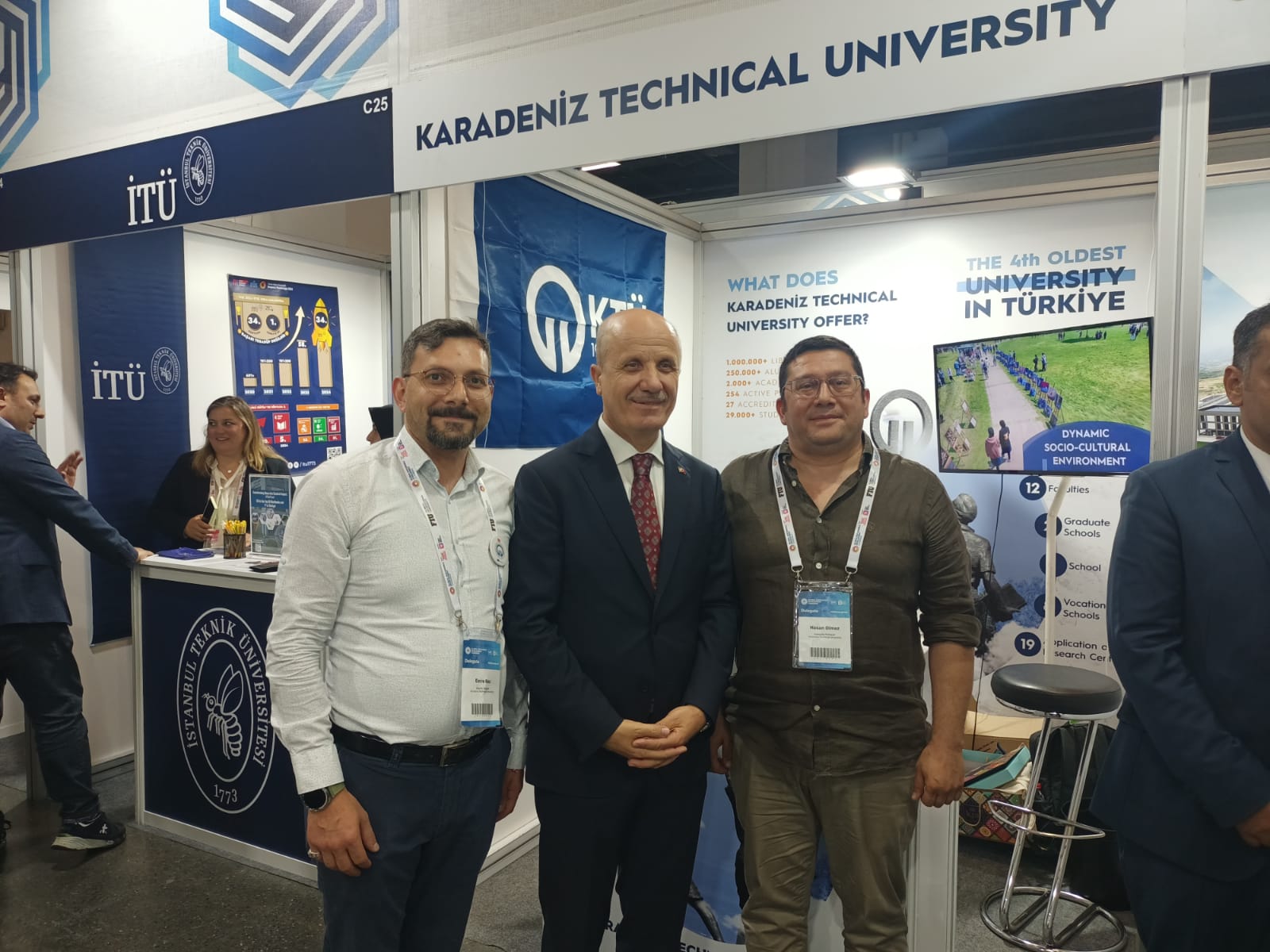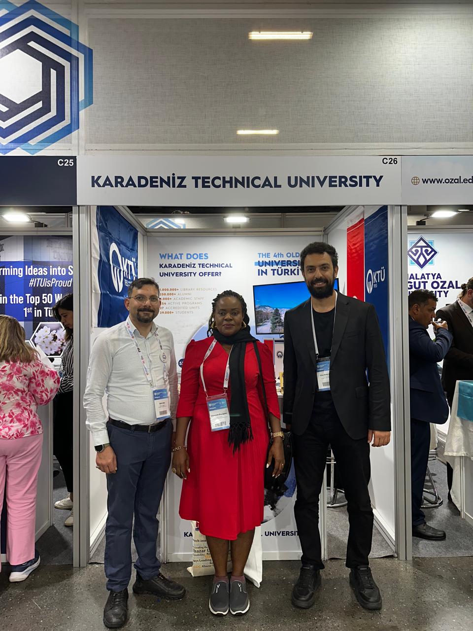 KTÜ Uluslararasılaşma Koordinatörü Dr. Öğr. Gör. Ulaş Kutsi Çezik, Uluslararasılaşma Koordinatör Yardımcısı Dr. Öğr. Üyesi Yücel Bulut, Araştırma Koordinatörlüğü Sürdürülebilirlik Birimi’nden Doç. Dr. Hasan Ölmez ve Rektörlük Kurumsal İletişim Koordinatörlüğü’nden Emre Koç’un katıldığı dev organizasyona, Yükseköğretim Kurulu (YÖK) Başkanı Prof. Dr. Erol Özvar, YÖK Uluslararası İlişkiler Dairesi Başkanı Mustafa Efe’nin yanı sıra Türkiye’nin önde gelen üniversitelerinin rektörleri ve akademisyenleri de KTÜ standını ziyaret ederek uluslararasılaşma çalışmaları hakkında bilgi aldı.