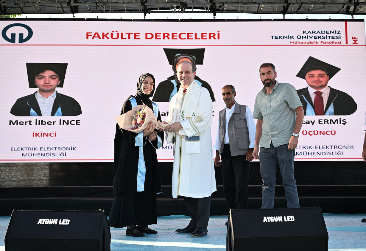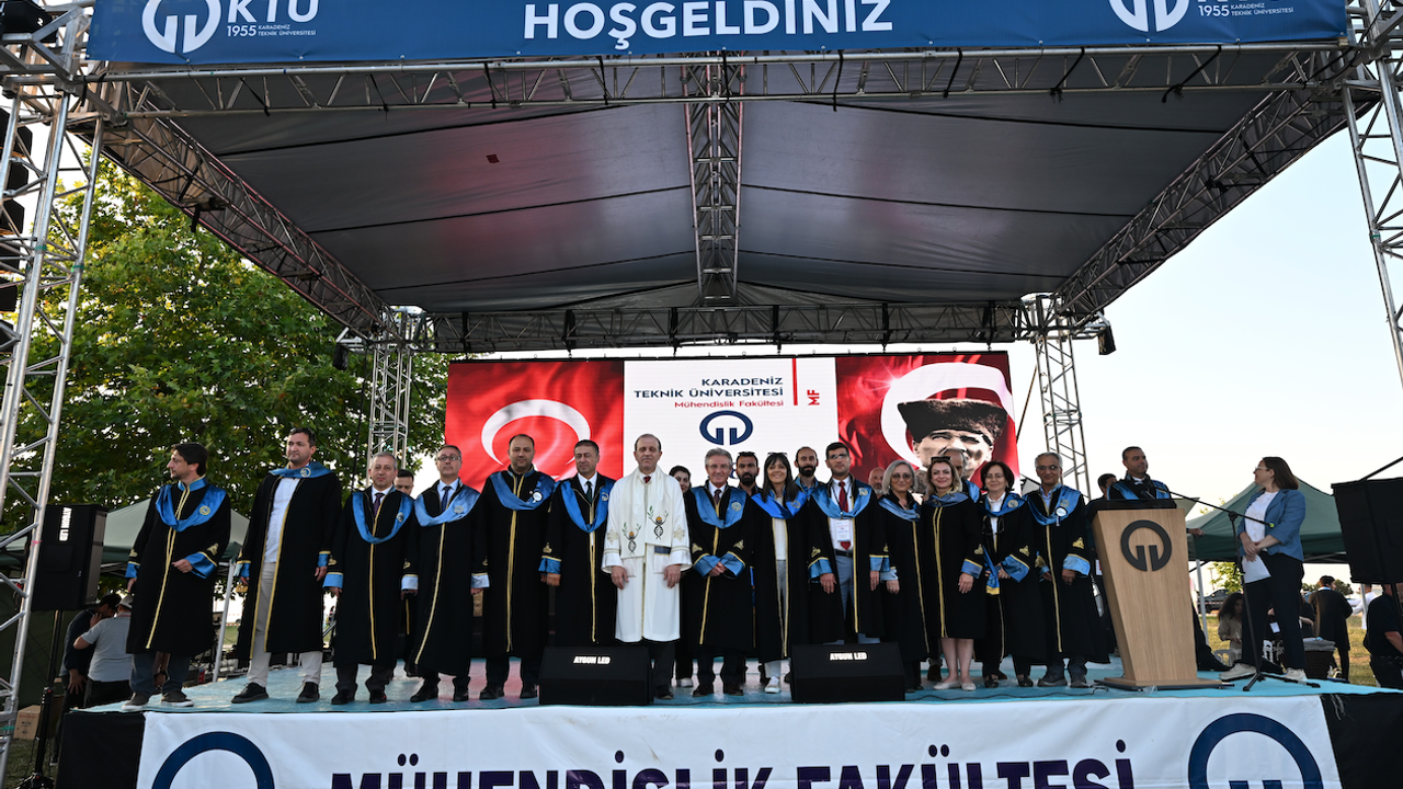 Mezuniyet törenine; KTÜ Rektörü Prof. Dr. Hamdullah Çuvalcı, Trabzon Büyükşehir Belediye Başkan Vekili Ahmet Yüksel Gülay, Trabzon Ticaret ve Sanayi Odası Başkanı (TTSO) Başkanı Erkut Çelebi, Mühendislik Fakültesi Dekanı Prof. Dr. Temel Varol, mühendis odaları başkanları, akademisyenler, mezunlar, aileleri ve çok sayıda davetli katıldı. Törende, mezunlara seslenen KTÜ Rektörü Prof. Dr. Hamdullah Çuvalcı, uzun ve zorlu bir eğitim-öğretim sürecinin sonuna gelindiğini ifade ederek “Sizler artık sadece birer mühendis değil, aynı zamanda bilgi çağının yapı ustalarısınız.” ifadelerini kullandı.