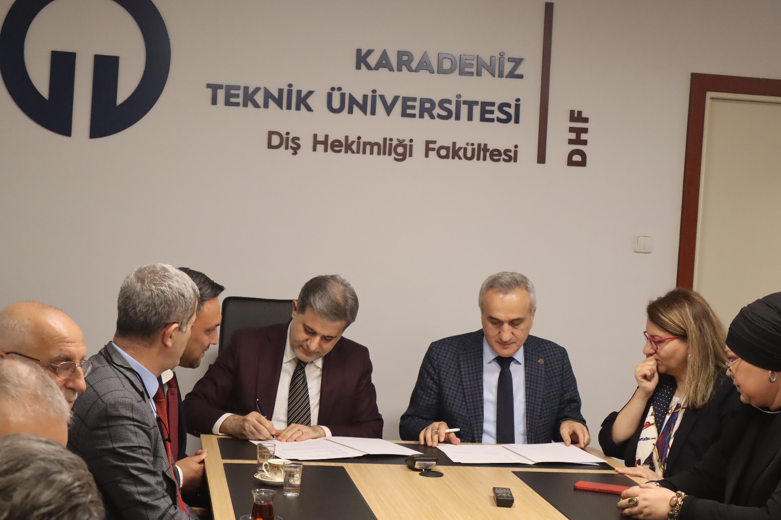 “Diş Hekimliği Fakültesi-Trabzon Kent Konseyi Arasında Sosyal Projelere Destek ve Eğitim Seminerleri Düzenlenme Protokolü”, KTÜ Diş Hekimliği Fakültesi Dekanı Prof. Dr. Tamer Taşdemir ile Trabzon Kent Konseyi Başkanı Prof. Dr. Hasan Karal tarafından imzalandı.