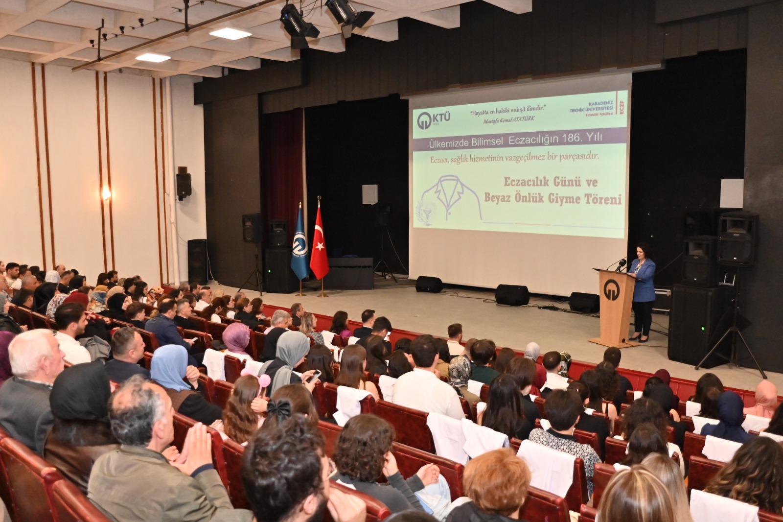 KTÜ Rektör Yardımcısı Prof. Dr. Bünyamin Er ise konuşmasında büyük Türk-İslam âlimi İbn-i Sina’nın “Hekimlik, insanlığa hizmet etme sanatıdır.” sözünü hatırlatarak eczacılığın ulvi bir meslek olduğunu vurguladı. Beyaz önlüğün yalnızca bir kıyafet olmadığını, aynı zamanda temizlik, emek ve sorumluluğun simgesi olduğunu belirten Er, “Neden beyaz? Çünkü önlüğü taşıyanın niyetinin sahihliğinin bir göstergesidir, dolayısıyla bu, onu taşıyana büyük bir sorumluluk yükler,” dedi. Osmanlı tabibi Sabuncuoğlu Şerafeddin’in “Marifet, ilaçla değil; ilaç kadar kalple de şifa vermektir.” sözünü de hatırlatarak, eczacıların bilgi kadar şefkatle de iyileştirme gücüne sahip olmaları gerektiğini ifade etti.