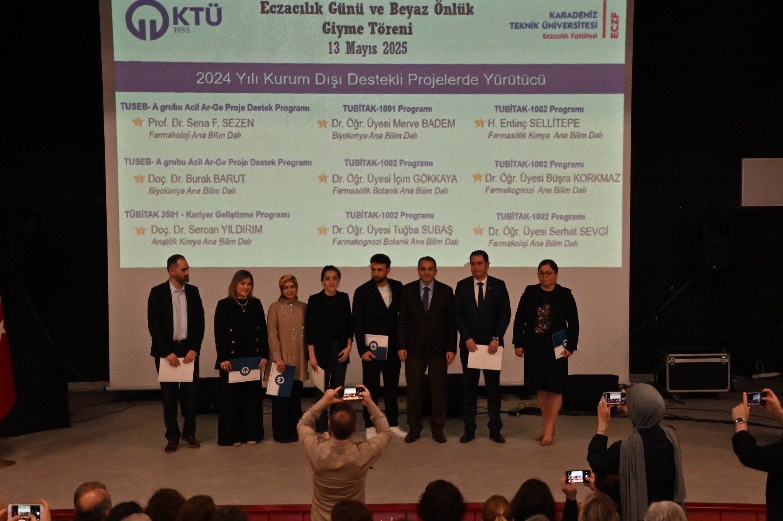 Konuşmaların ardından, 2024-2025 akademik yılı içerisinde KTÜ Eczacılık Fakültesine ve üniversitenin bilimsel gelişimine katkı sunan akademisyen ve öğrencilere tebrik belgeleri takdim edildi.