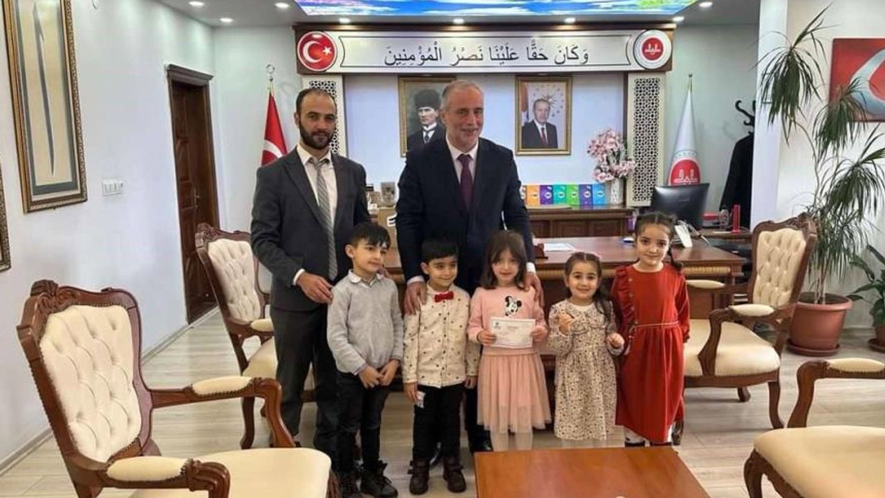 Bağışları kabul eden İl Müftüsü Abdurrahman Şahin, minik öğrencilere teşekkür etti.
