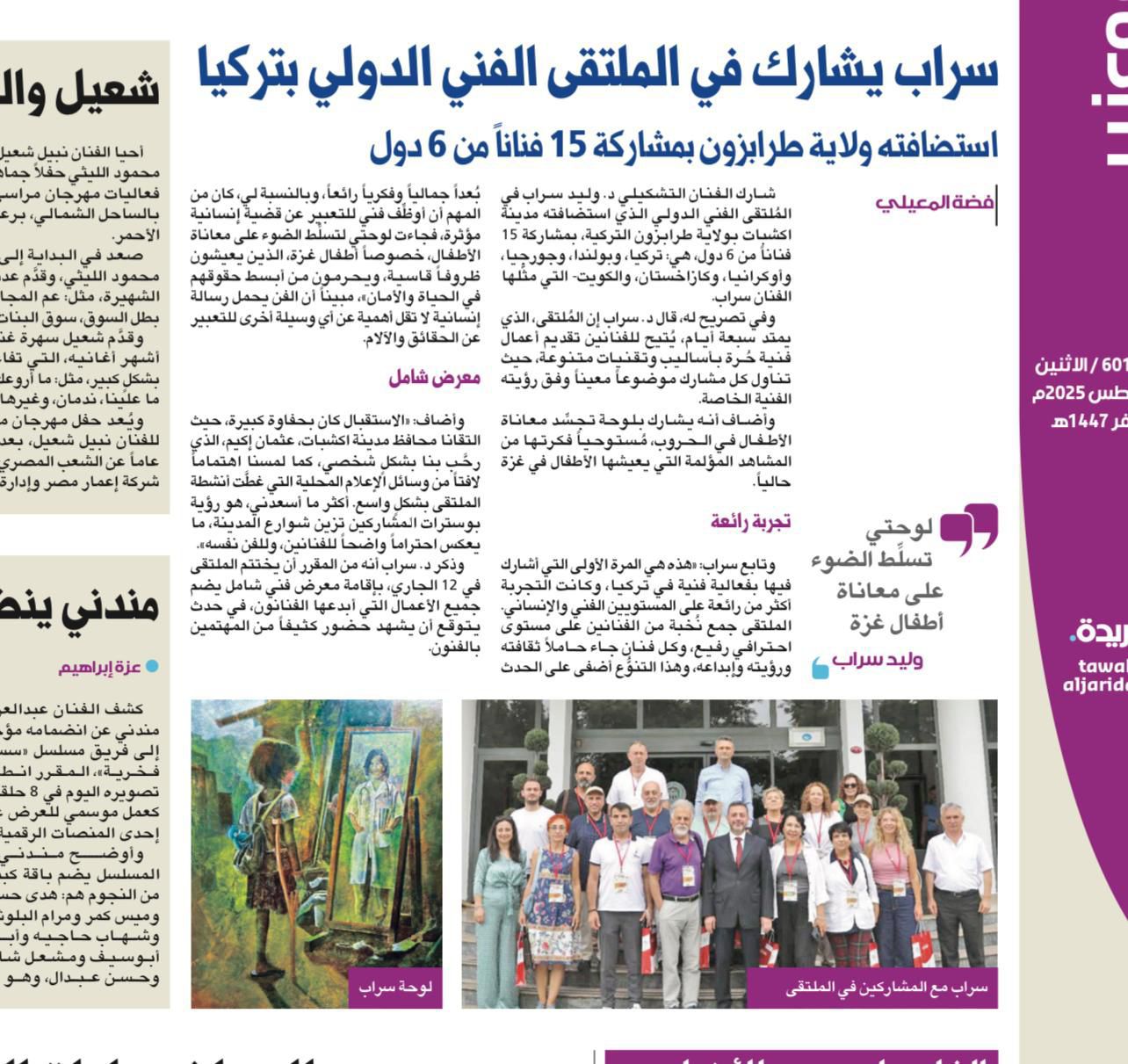 Sanatçının “Tablom, Gazze çocuklarının yaşadığı acıları aydınlatıyor” sözleri, çalıştayın en çok konuşulan mesajlarından biri oldu. Bu anlamlı mesaj, Kuveyt basınında da geniş yer bularak Akçaabat Belediyesi’nin düzenlediği etkinliğin uluslararası yankı bulmasını sağladı.
