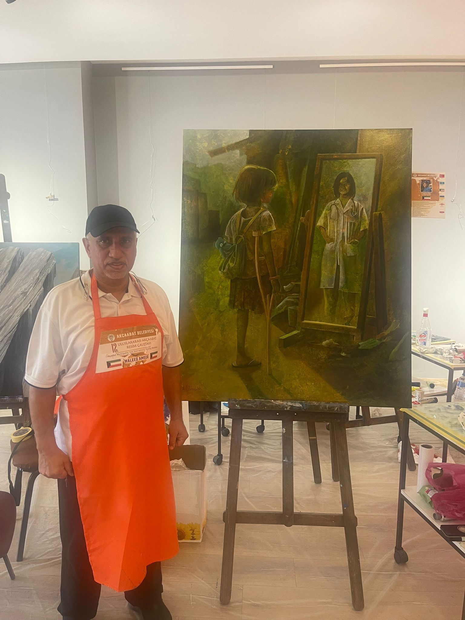 Kuveyt’ten katılan Waleed Ameer Velid Serab, Filistin halkının, özellikle Gazze’deki çocukların yaşadığı acıları konu alan eseriyle dikkat çekti. İnsanî mesajlar ve toplumsal temalara derin bir bakış sunan çalışmalarıyla tanınan Serab’ın eseri, katılımcılar tarafından büyük ilgi gördü.