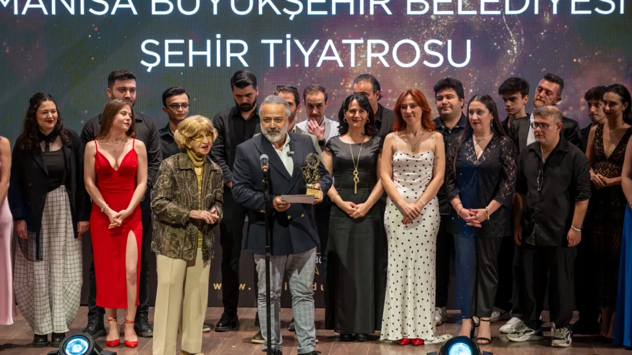 Şehir Tiyatrosu ekibi, ödülü, yarışmanın Onursal Jüri Başkanı da olan Göksel Kortay’ın elinden aldı.