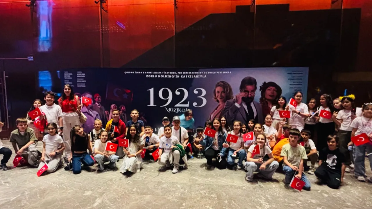 Manisa Büyükşehir Belediyesi Çocuk Kültür ve Sanat Merkezleri’nde (ÇKSM) eğitim gören 50 çocuk, 19 Mayıs Atatürk’ü Anma, Gençlik ve Spor Bayramı’nda, İstanbul’da Zorlu Performans Sanatları Merkezi’nde (PSM) “1923” müzikaliyle Cumhuriyet’in büyüleyici hikayesine tanıklık etti.MANİSA (İGFA) - Manisalı minik öğrenciler, Zorlu Holding’in jestiyle, Cumhuriyet’in 100. yılına özel olarak sahnelenen bu unutulmaz gösteriyi yerinde izleme şansı buldu.