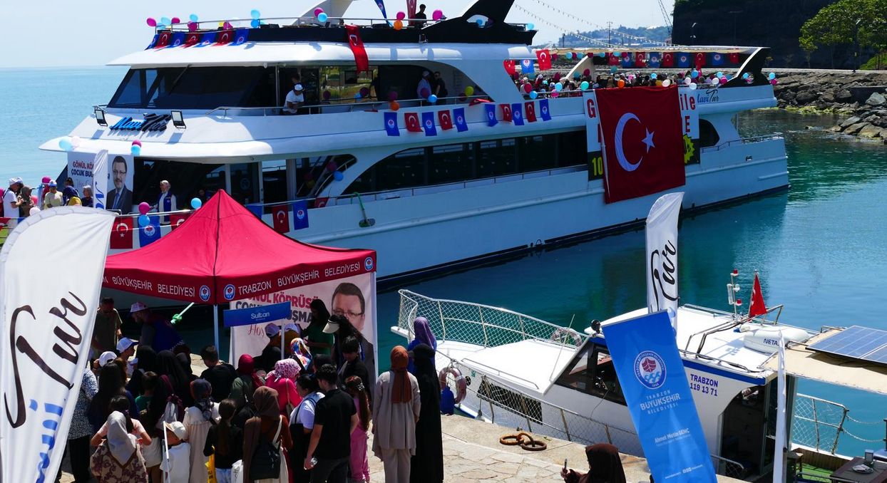 Trabzon Büyükşehir Belediye Başkan Vekili Faruk Kanca, Büyükşehir Belediyesi Sosyal Hizmetler Dairesi Başkanlığı tarafından, çocukların sosyal hayata katılımını sağlamak ve moral motivasyonlarını artırmak amacıyla “Maviye Açılan Kalpler” temasıyla düzenlenen gemi turu etkinliğine katıldı. Etkinlikte; özel gereksinimli bireyler ve aileleri, kanser tedavisi gören çocuklar ile yetim ve öksüz çocuklar olmak üzere toplam 300 çocuk ağırlandı. Ganita Sahili’nden başlayan gemi turu boyunca, çocuklara çeşitli ikramlarda bulunuldu. Palyaço gösterileri, müzikli etkinlikler ve eğlenceli aktivitelerle gönüllerince eğlenen çocuklar unutulmaz anlar yaşarken, aileleri de bu anlamlı etkinlik için belediyeye teşekkür etti.