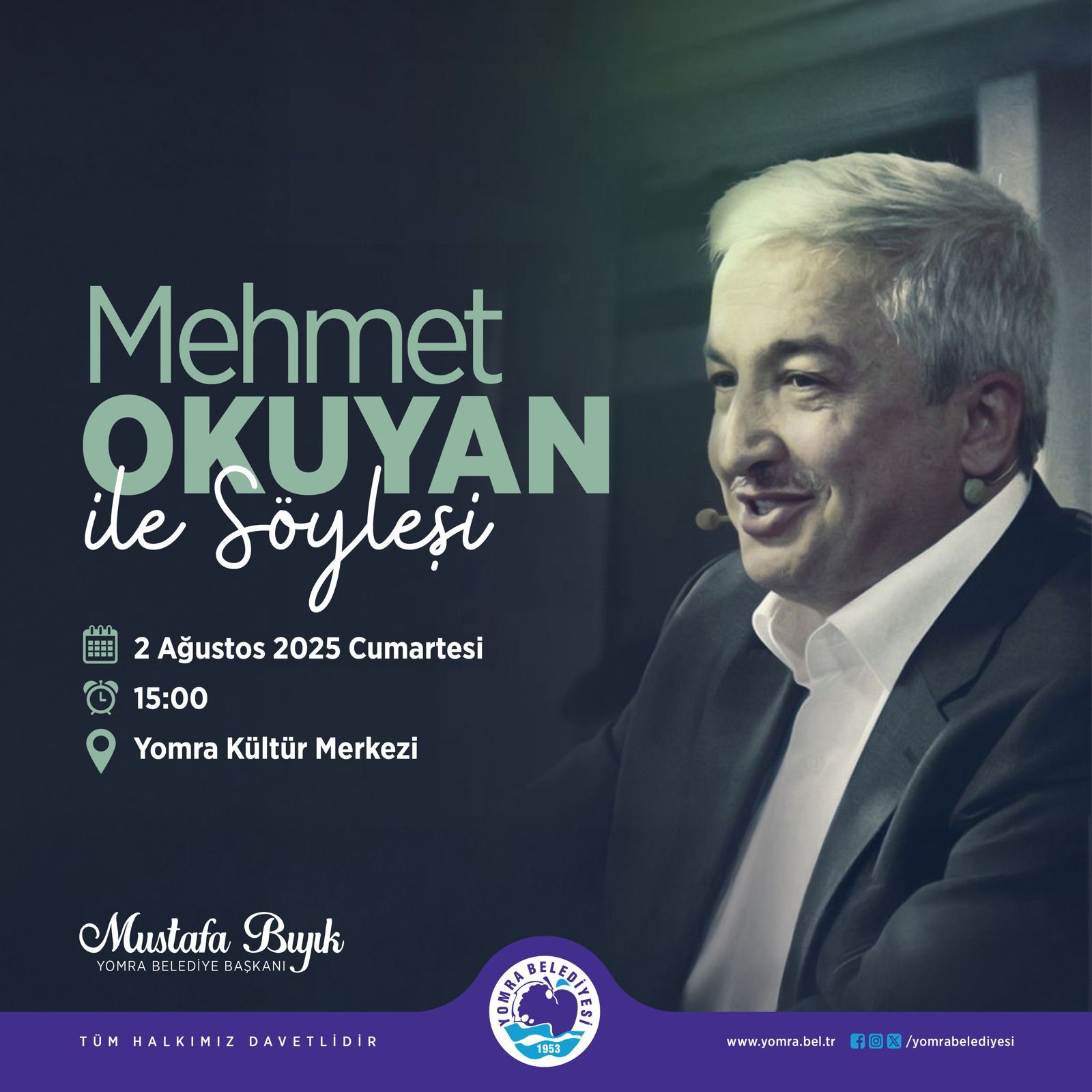 Trabzon’un önde gelen ilahiyatçılarından birisi olan Prof. Dr. Mehmet Okuyan, cumartesi günü Yomra’da vereceği konferansla halkla buluşacak. Yomra Belediyesi’nin duyurusuna göre, 2 Ağustos Cumartesi saat 15:00’te Yomra Kültür Merkezi’nde başlayacak konferans, ücretsiz ve halka açık olacak.