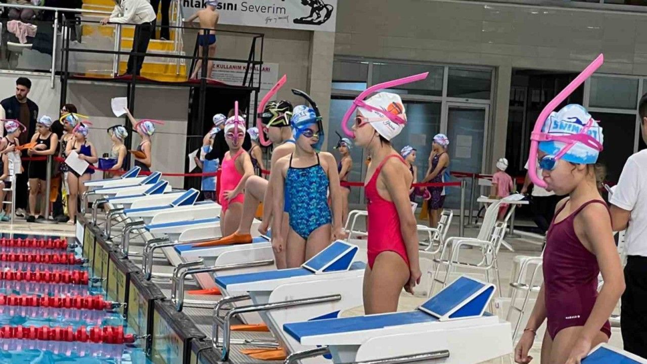 Paletli yüzme küçükler kategorisinde 93 minik yüzücü, madalya için yarıştı.