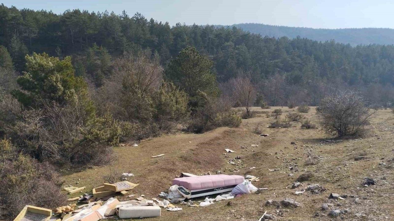 Bolu’da Yedigöller Milli Parkı yolu üzerindeki yol kenarına atılan mobilya eşyalarının parçalanmış vaziyetteki hali tepkiye sebep oldu.