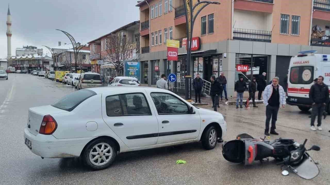 Çorum’un Alaca ilçesinde otomobil ile çarpışan motosikletin sürücüsü yaralandı.