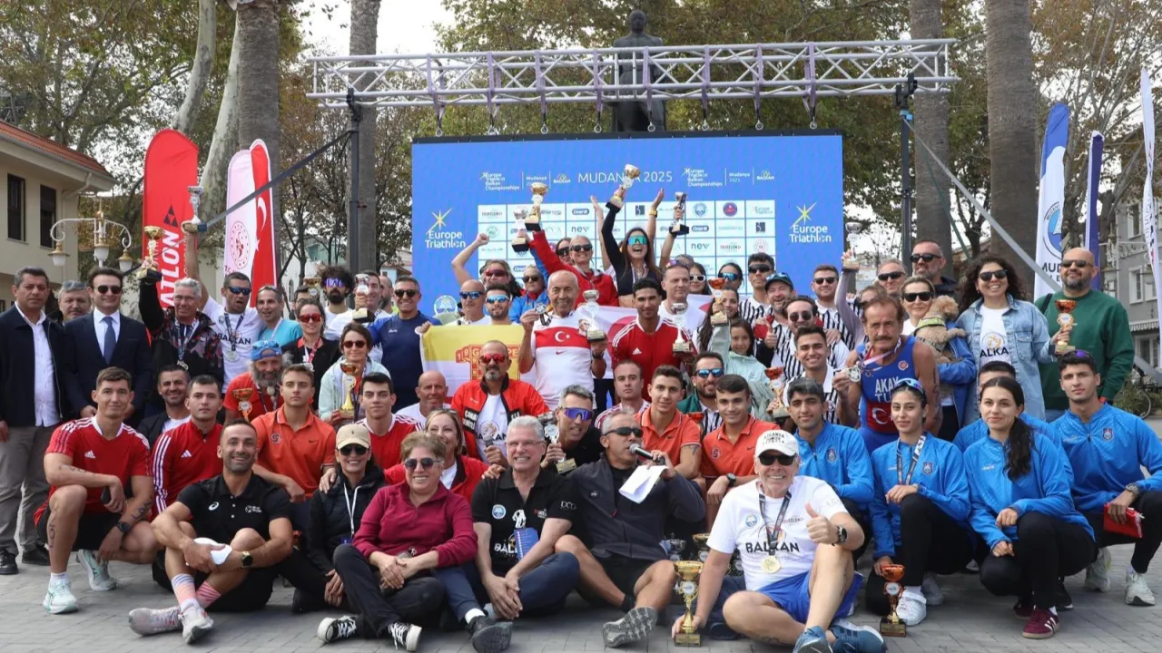 Bursa'da Mudanya Belediyesi ile Türkiye Triatlon Federasyonu’nun iş birliğiyle düzenlenen “2025 Avrupa Triatlon Balkan Şampiyonası” ve “Yaş Grupları Sprint Türkiye Kupası Finalleri” büyük heyecan ve mücadeleye sahne oldu. İlçenin havası, denizi ve tarihi sokakları arasında gerçekleşen şampiyona ve finallerde, 13 ile 70 yaş arasındaki 329 triatlet Elit, Genç ve Yaş Grupları kategorilerinde yarıştı.BURSA (İGFA) - Mudanya'nın ev sahipliği yaptığı Avrupa Triatlon Balkan Şampiyonası'nda triatletler, zorlu yarışmada 750 metre yüzme, 20 kilometre bisiklet ve 5 kilometre koşu etaplarını tamamlayarak varış çizgisine ulaştı. Elit kadınlarda birinciliği, 1 saat 3 dakika 14 saniyelik derecesiyle Türkiye’den Sinem Francisca elde ederken; elit erkeklerde 56 dakika 22 saniyelik süresiyle Romanya’dan Carol Popa birinci oldu.