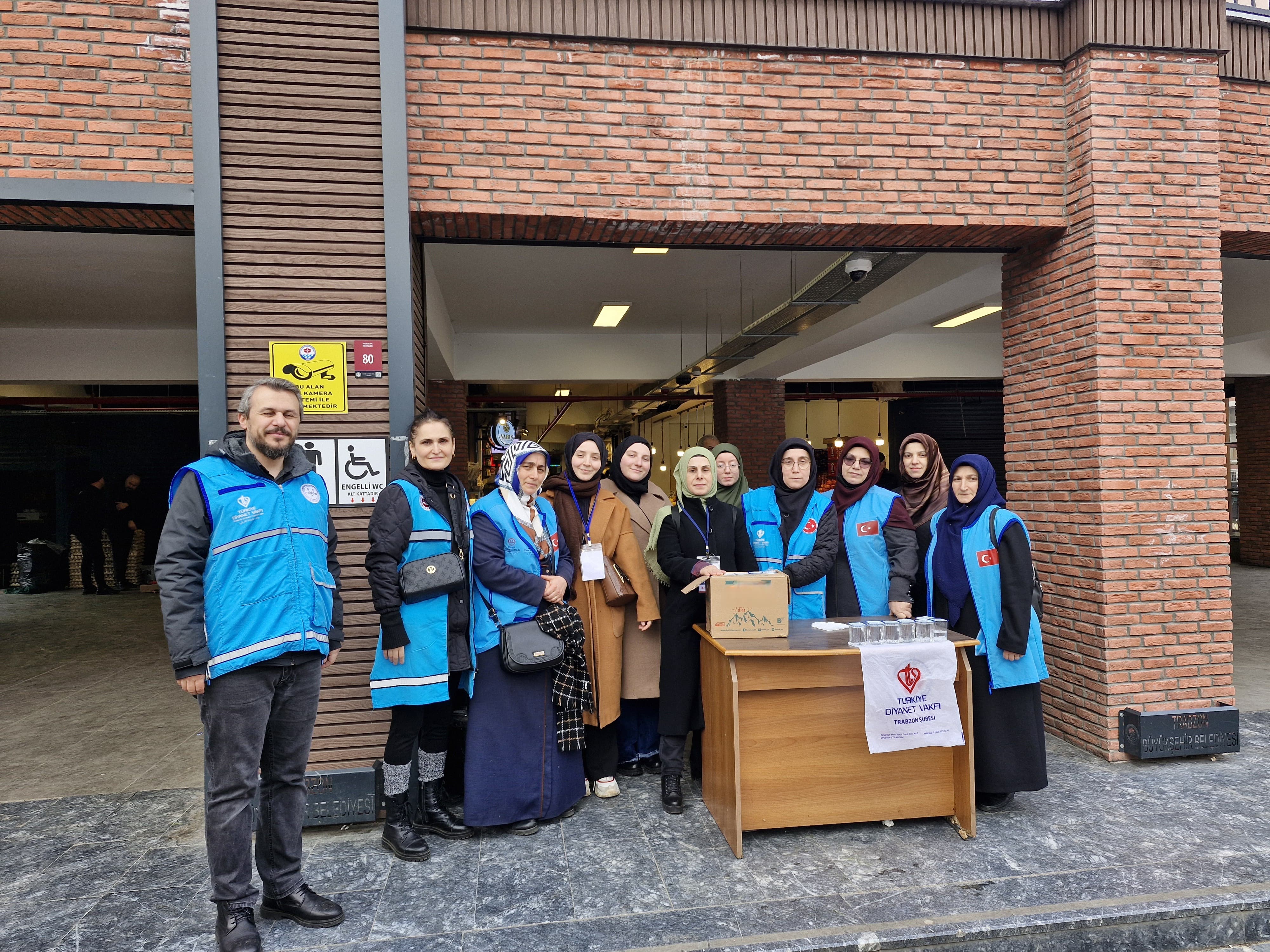 Türkiye Diyanet Vakfı Trabzon Şubesi Kadın Kolları İyilik Gönüllüleri, genç gönüllüler ile birlikte "İçimizi Isıtan İyilik" projesi kapsamında Trabzon Büyükşehir Aşevi'nde usta ellerde hazırlanan çorbaları, Ortahisar'ın en kalabalık pazarında pazarcılara, esnafa ve alışveriş için gelen vatandaşlara ikram etti. Programa Ortahisar Müftüsü Özcan Yılmaz, Kadın Kolları İl Sorumlusu Lütfiye Bayraktar, İl Müftülüğü Vaizesi Havva Bahadır, Ortahisar Müftülüğü Vaizesi Hatice Kurt, iyilik gönüllüleri ve genç gönüllüler katılım sağladı. Halkın yoğun ilgisi ve teşekkür dilekleriyle program sona erdi. Her daim içimizi iyilikle ısıtacak nice güzel projelerde emeği geçen herkese teşekkürlerimizi sunuyoruz.