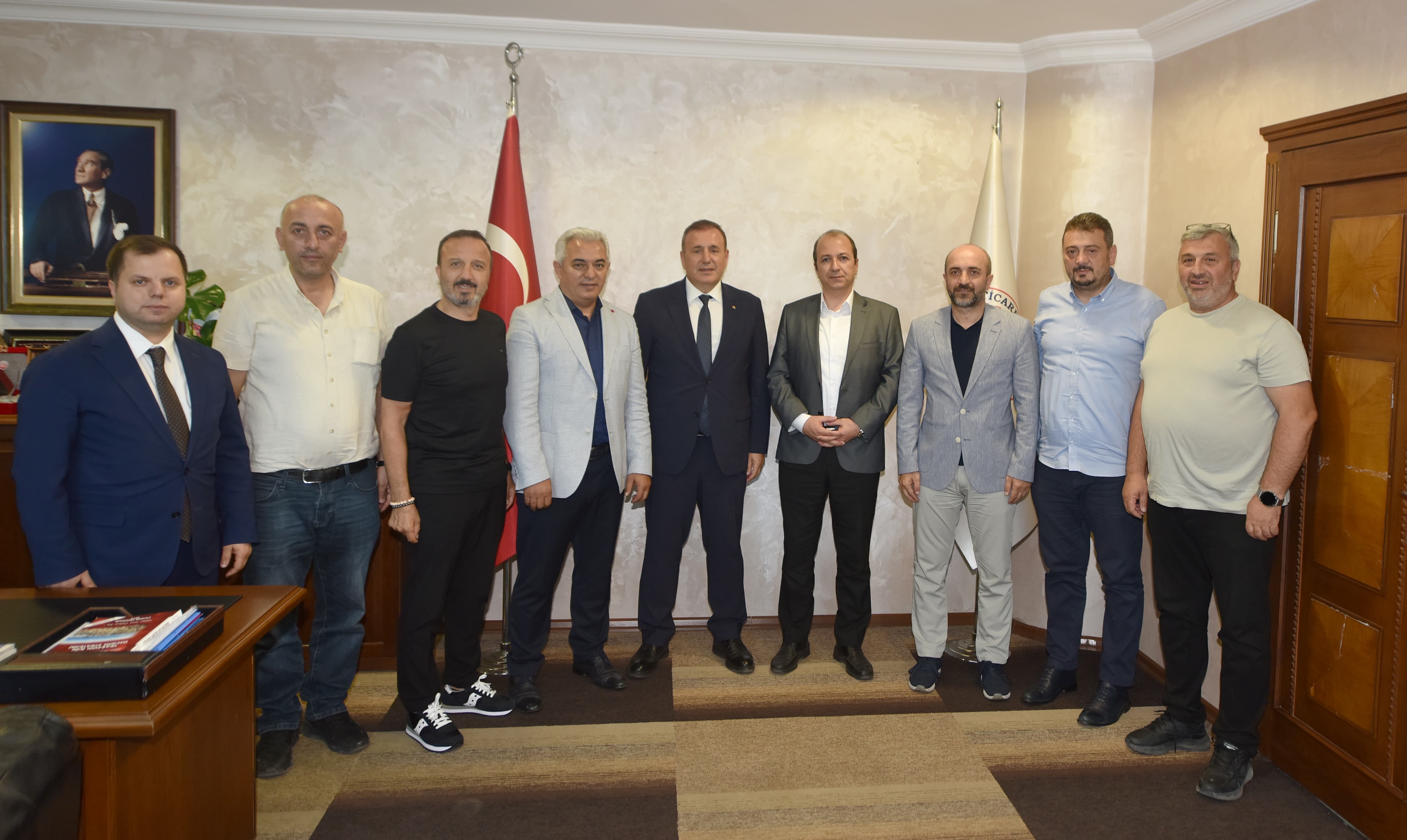 KOSGEB Trabzon İl Müdürü Muhammet Mustafa Kurt, Trabzon Ticaret ve Sanayi Odası'na (TTSO) veda ziyaretinde bulundu. KOSGEB Ekosistem Destekleri Daire Başkanı olarak atanan KOSGEB Trabzon İl Müdürü Muhammet Mustafa Kurt, TTSO Başkanı Erkut Çelebi ve yönetim kurulu üyeleri ile görüştü. Mustafa Kurt, Trabzon'daki görev süresi boyunca TTSO ile uyumlu ve güzel çalışmalar yürüttüklerini belirterek, destekleri için teşekkür etti. Başkan Erkut Çelebi de Kurt'a yeni görevinde başarı dileklerini iletti.