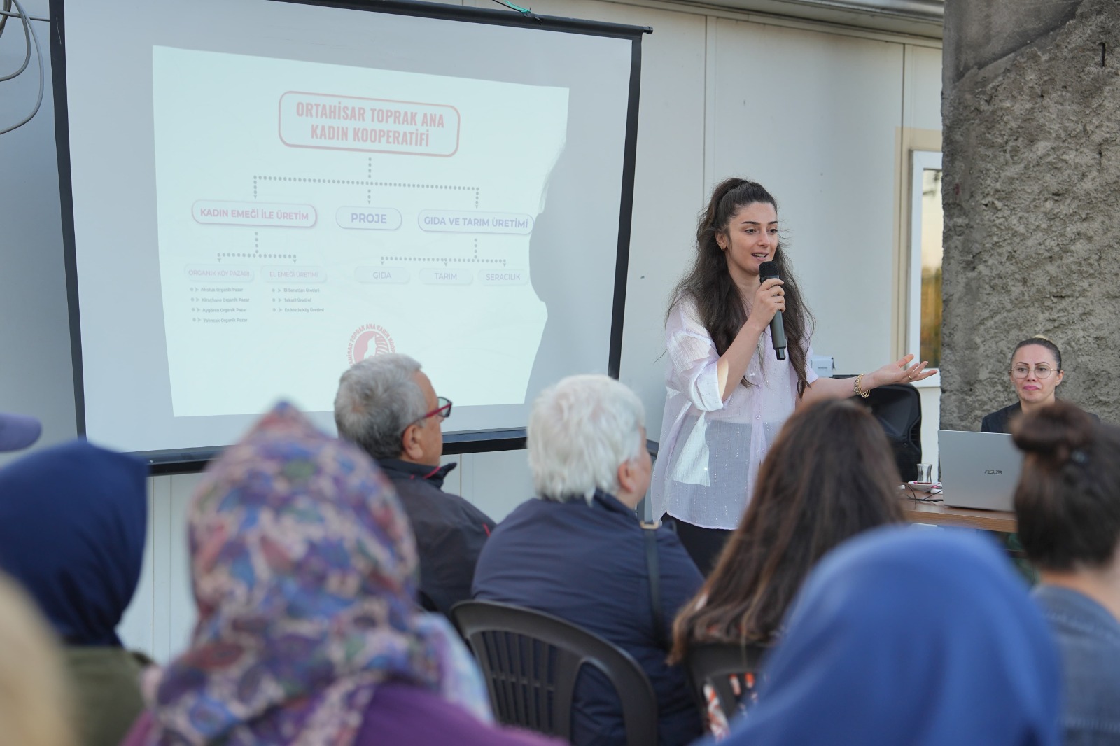 Programda Gıda Mühendisi Dilara Ertürk, Toprak Ana Kadın Kooperatifi’nin kadınların sosyo-ekonomik olarak güçlenmesini ve üretimde söz sahibi olmalarını sağlamak amacıyla kurulduğunu anlattı. Meclis Üyesi Sibel Alemdaroğlu, kadınların ÇKS kaydıyla kooperatife katılabileceğini ve tapu sahibi olmayanların eşlerinden kiralama ile kayıt yapabileceğini belirtti.