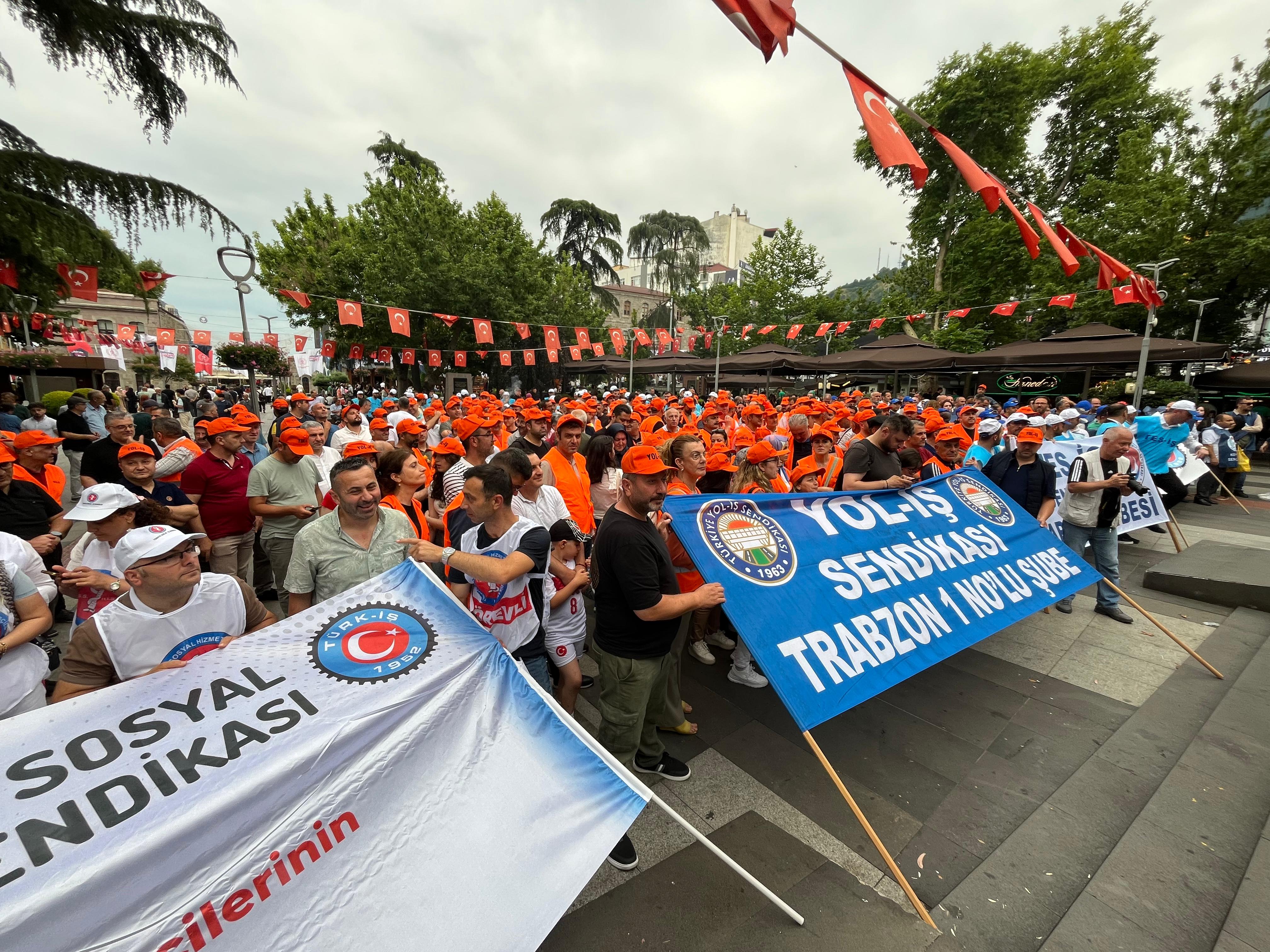 Trabzon Atatürk Alanı Meydan Parkı’nda, Türk-İş Trabzon İl Başkanı Gökhan Gedikli öncülüğünde toplanan sendika yöneticileri ve emekçiler, 2025 yılı toplu iş sözleşme sürecine ilişkin açıklama yaptı.