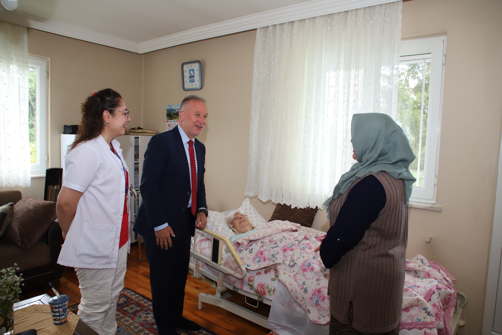 Trabzon Sağlık Müdürü Mehmet Topsakal, Evde Sağlık Hizmetleri Programı kapsamında hasta ziyaretinde bulunarak, evde sağlık hizmeti alan hastalara sunulan görüntülü muayene ve rapor alma gibi dijital hizmetlerin, doktora gitmeden kaliteli sağlık hizmetine erişimi kolaylaştırdığını vurguladı. Ayrıca hasta yakınlarına; düşme, kırık gibi olası kazaların önlenmesi, yaşam alanlarının güvenli hâle getirilmesi ve hastalara günlük yaşamda destek olunması konusunda önemli uyarılarda bulundu.
