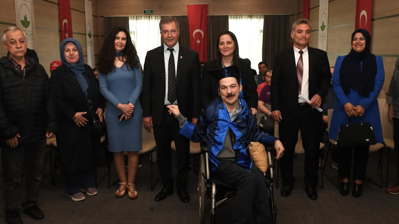 Koyduğu iki hedefi de gerçekleştiren Fırat Kıpçak için Osmangazi Belediyesi Engelliler Bakım Merkezi OBAM’da mezuniyet töreni düzenlendi. Mezuniyet cübbesi ve kepini giyen Kıpçak, diplomasını Osmangazi Belediye Başkan Yardımcısı Mücahit Yıldızhan ve Osmangazi Halk Eğitim Müdürü Zeynep Terece’nin elinden aldı. Mezuniyet töreninde arkadaşlarının yalnız bırakmadığı özel gereksinimli Fırat Kıpçak, kepini havaya atarak mutluluğunu arkadaşlarıyla paylaştı.