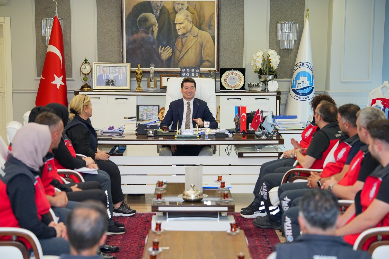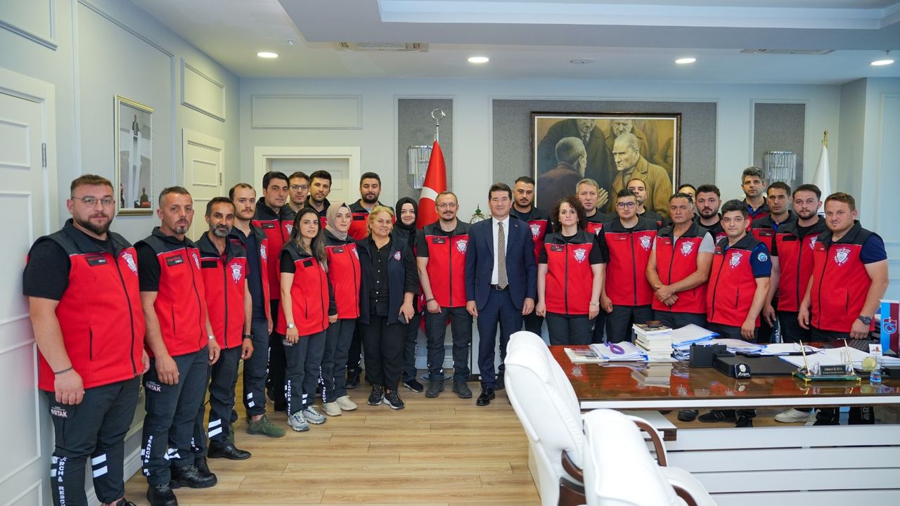 Ortahisar Belediyesi’nin Arama ve Kurtarma Ekibi (ORTAK) ekibi, Belediye Başkanı Ahmet Kaya’yı makamında ziyaret etti. ORTAK Ekip Lideri ve İmar ve Şehircilik Müdürü Şenay Karakaş başkanlığındaki ziyarete İnsan Kaynakları Müdürü Çiğdem Arslan, Muhtarlıklar Müdürü Hakan Altın, Ekip Lider Yardımcısı Mümin Bulut, Saha Şefi Hüseyin Küçükcelep, Sıhhi Sorumlu Kübra Topal Durmuş ve ekip üyeleri katıldı.