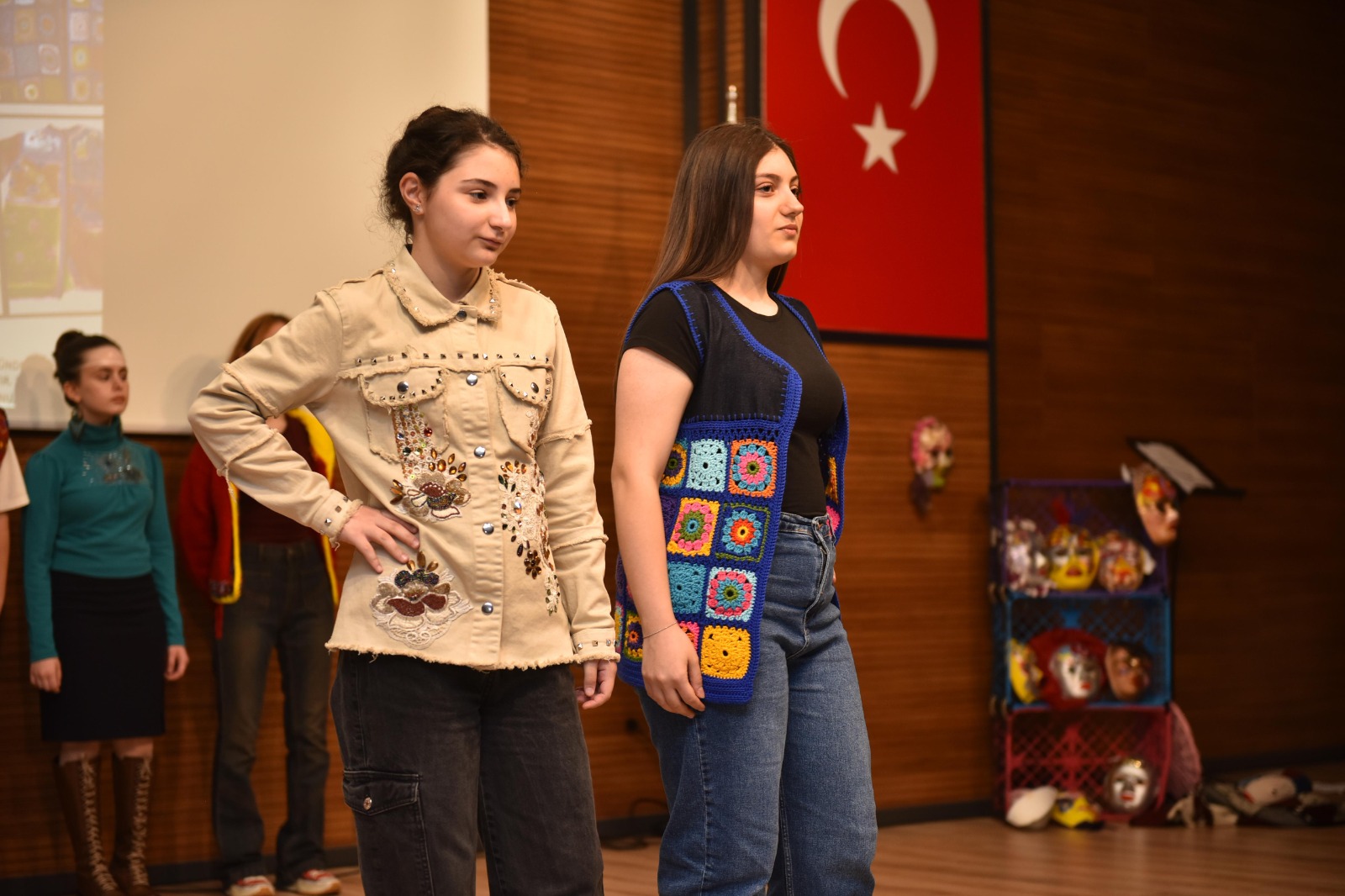 ÖĞRENCİLER, ATIK MALZEMELERDEN ÜRETİLEN KIYAFETLERLE DEFİLE YAPTI