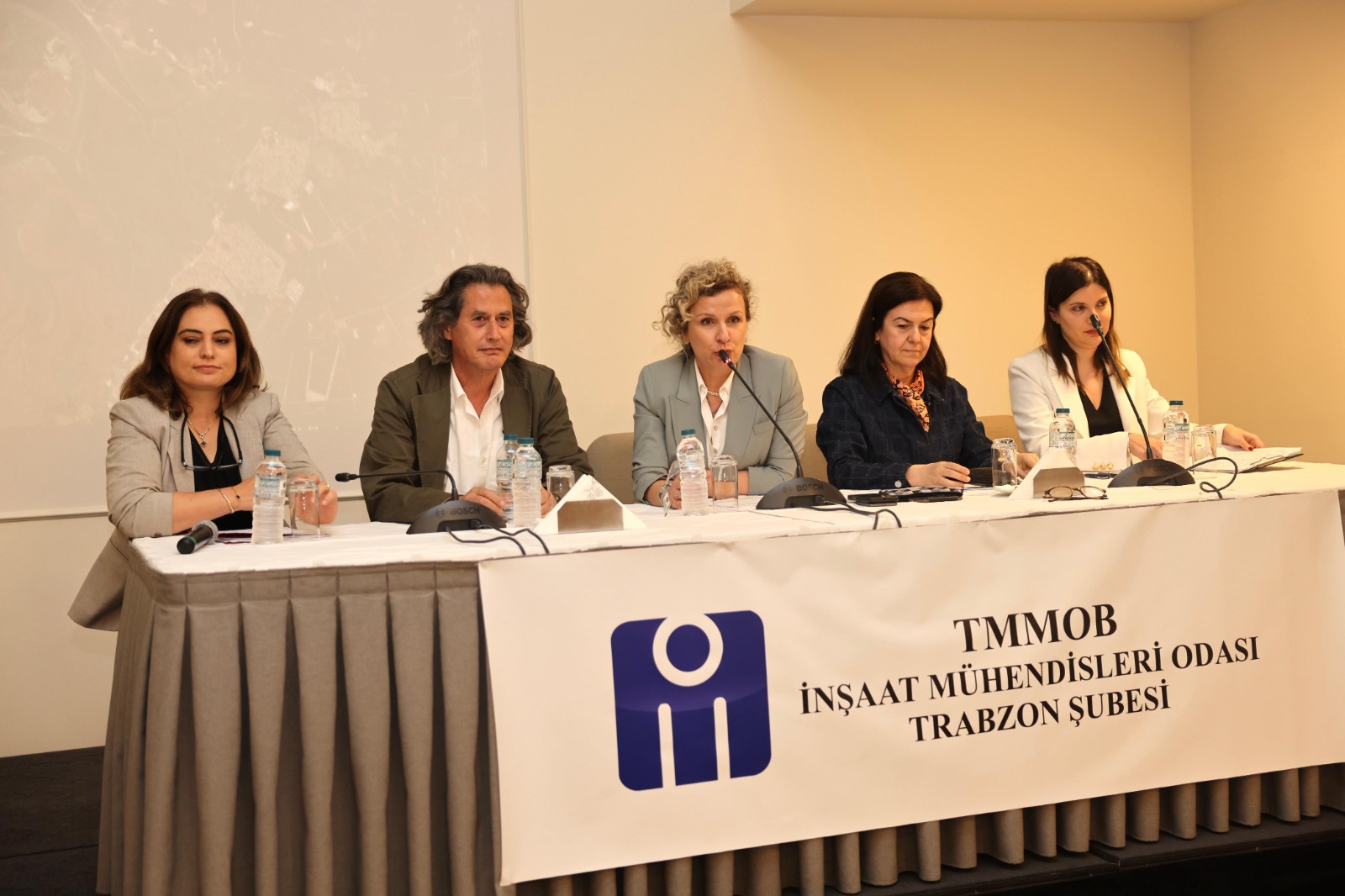Ortahisar Belediye Başkanvekili Cüneyit Zorlu, Belediye Başkan Yardımcısı Alper Öztürk, ORKENT Genel Müdürü ve Çağlayan Kentsel Dönüşüm Projesi Koordinatörü Can İhsan Bozbaş, TMMOB İnşaat Mühendisleri Odası Trabzon Şubesi tarafından düzenlenen ‘Adım Adım Kentsel Dönüşüm’ konulu panele katıldı. Yüksek Şehir Plancısı Yelda Reis’in moderatörlüğünü gerçekleştirdiği panelde Profesör Dr. Dilek Beyazlı, Profesör Dr. Işıl Erol, Avukat Çiğdem Kezer, Şehir Plancısı Ali Faruk Göksu panelist olarak yer aldı.