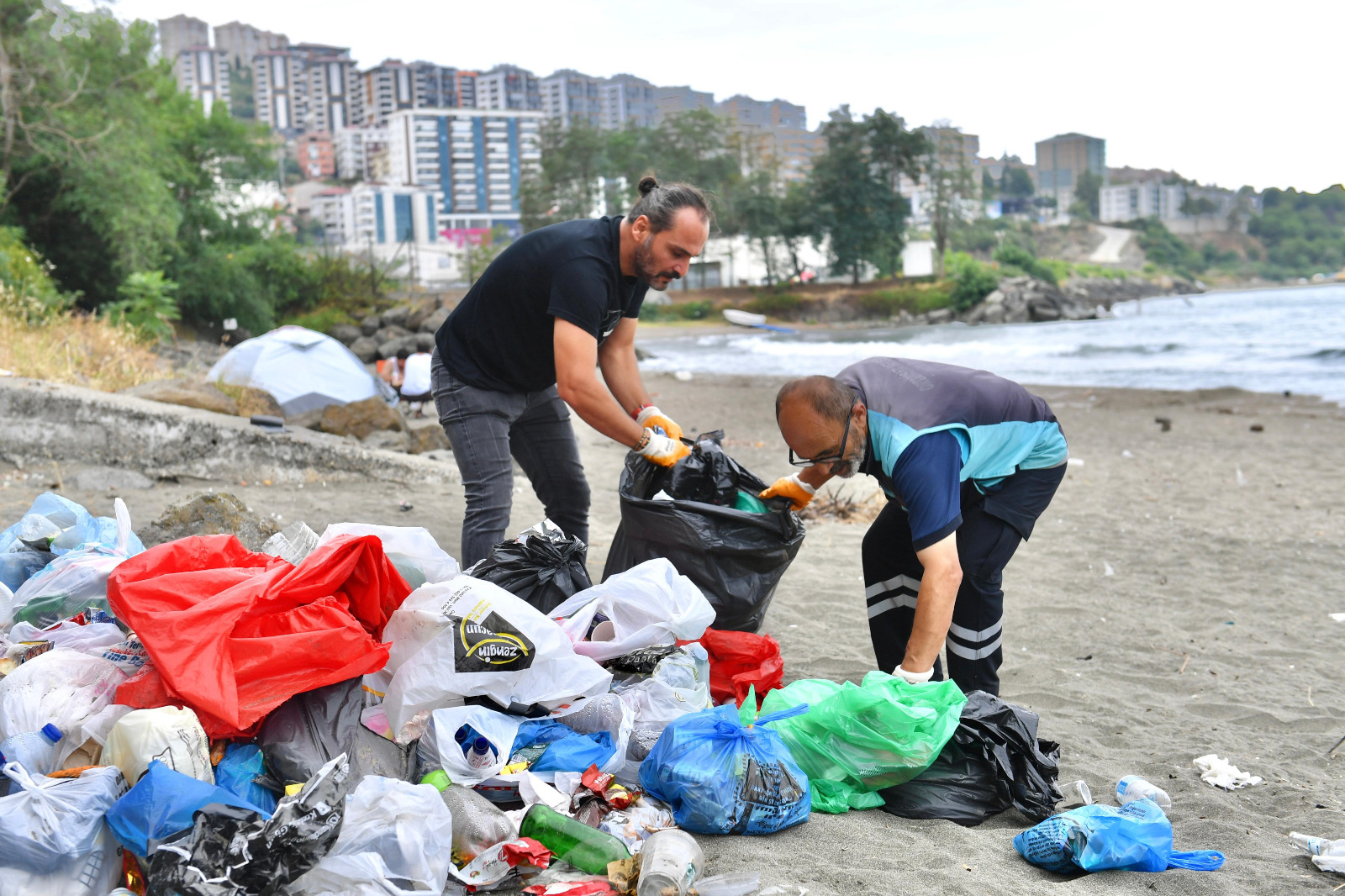 Yalıncak sahiline atılan ambalaj, kağıt, poşet, cam şişe, naylon, izmarit gibi her türlü atık maddeler tek tek toplanarak, kötü görüntü ortadan kaldırıldı. Toplanan çöpler arasındaki plastik ve cam atıklar geri dönüşüme kazandırılmak üzere ayrıştırıldı.