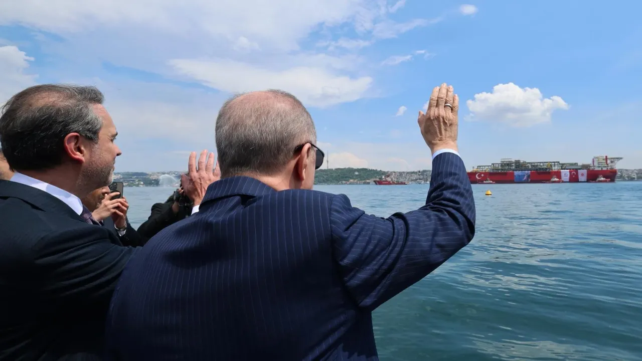 Kaptanın, “Şeref verdiniz, onur verdiniz” sözlerine, “Çok ağır gidiyorsunuz, biraz hızlandırın” diyerek espriyle yanıt veren Erdoğan, “Yolunuz açık olsun, Sakarya’da bol bol doğal gaz bekliyoruz” dedi. Kaptan, “Vatanımıza milletimize hayırlı olsun” derken, Erdoğan, “Amin. Sağ olun, var olun” yanıtını verdi.