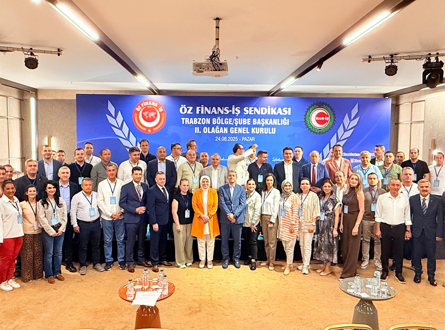 Sendikadan yapılan açıklamaya göre, bir otelde gerçekleştirilen Öz Finans-İş Sendikası Trabzon Bölge Başkanlığı 2. Olağan Genel Kuruluna, AK Parti Genel Merkez Yerel Yönetimler Başkan Yardımcısı Ayşe Sula Köseoğlu, Öz Finans-İş Sendikası Genel Başkanı Ahmet Eroğlu, davetliler ve delegeler katıldı.