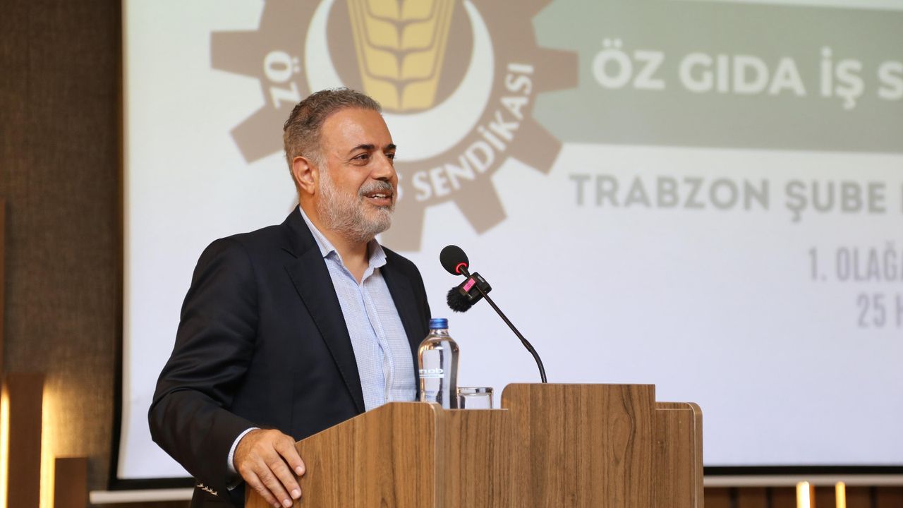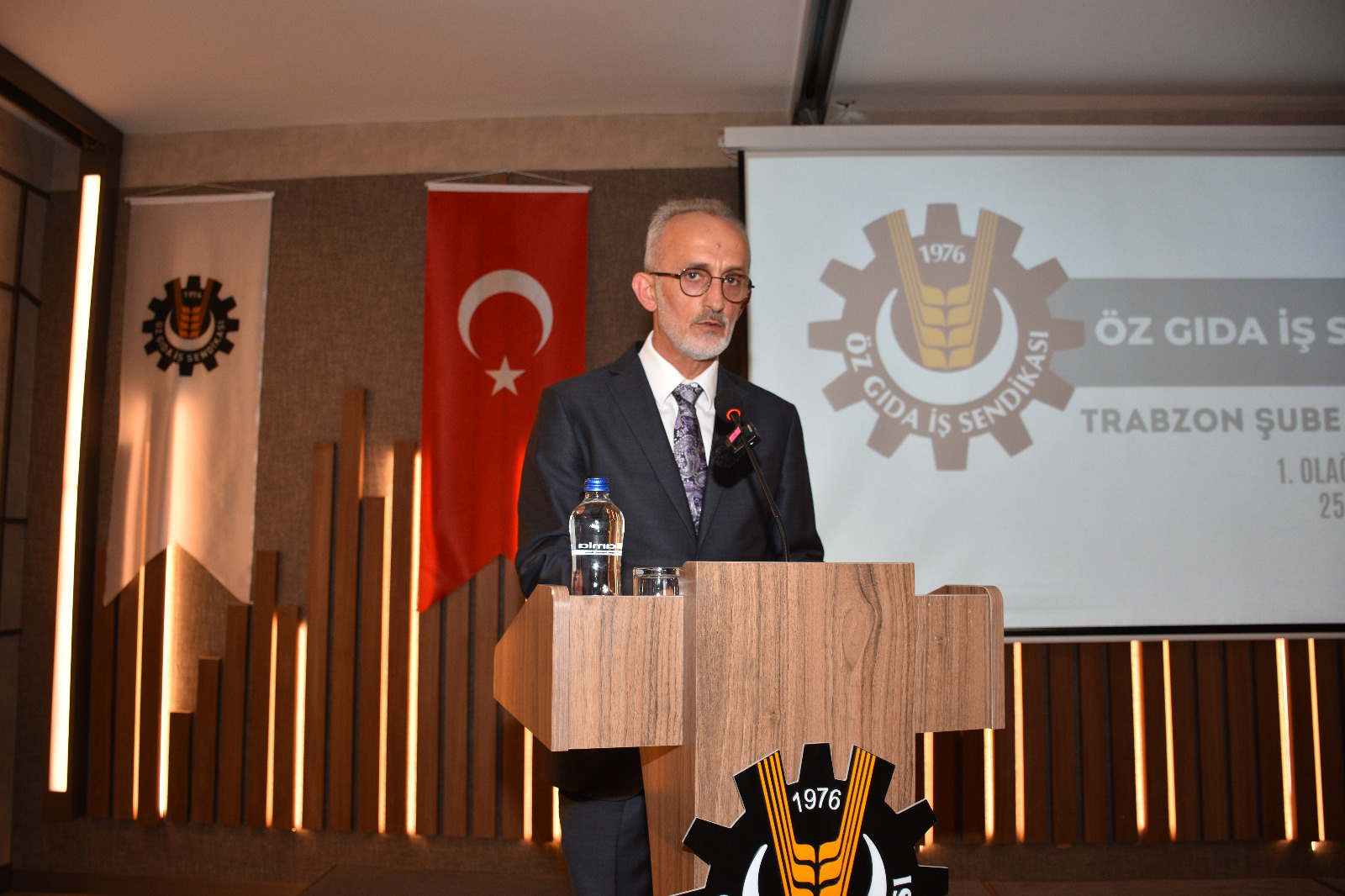 Öz Gıda İş Sendikası Trabzon Şube Başkanı Necdet Hacıosmanoğlu, Genel Kurul’a hitaben yaptığı konuşmada, sendikacılığın ve meşakkatli bir mücadele olduğunu belirterek, sabır, güven ve inanç gerektirdiğini söyledi. Hacıosmanoğlu, “Çaykur emekçileri olarak taleplerimizin gerçekleşmesi için dayanışma içinde mücadelemizi sürdüreceğiz.” dedi.