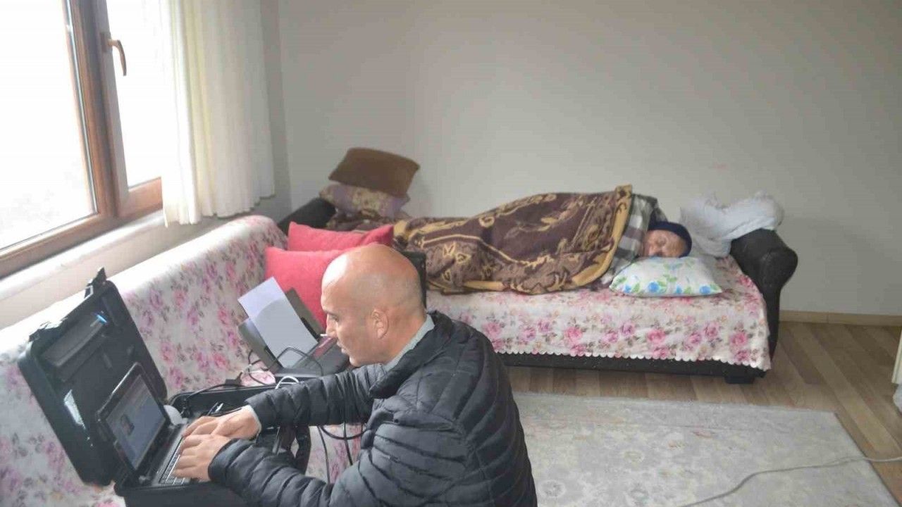 İçişleri Bakanlığı Nüfus ve Vatandaşlık İşleri Genel Müdürlüğünce hayata geçirilen “Adreste Nüfus Hizmeti” çerçevesinde engelli ve yatalak olan vatandaşların kimlik değişimleri ikametgâhlarında tamamlanıyor. Bu çerçevesinde Trabzon Şalpazarı genelinde yapılan çalışmalar neticesinde 23 aile belirlendi. Nüfus Müdürlüğüne giderek kimlik kartlarını henüz değiştiremeyen 23 ailenin evine giden Şalpazarı kaymakamlık personeli, özel mobil cihazlarla parmak izi alarak yeni kimlik kartı başvurularını aldı. Bu hizmetlerden yararlananlardan biri de 6 evladı, 18 torunu, 26 torunun torunu bulunan 100 yaşındaki Hacı Keziban Usta gezici kayıt terminali ile ikamet ettiği Akçiriş mahallesindeki evinde bilgileri alınarak yeni kimlik kartına kavuşanlar arasında yer aldı.