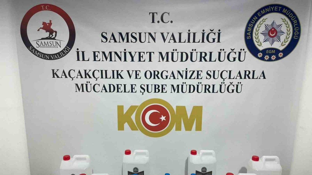 Samsun’da polis tarafından düzenlenen operasyonda etil alkol ve sahte içki ele geçirildi.