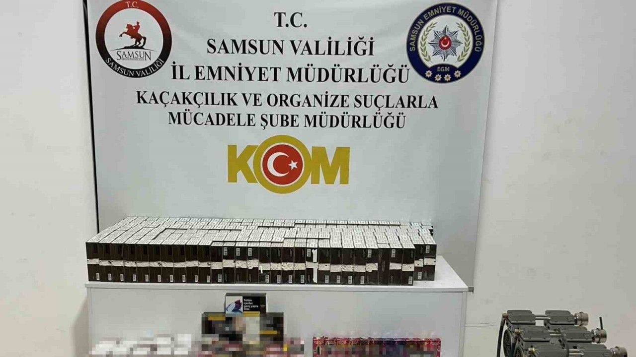 Edinilen bilgiye göre, Samsun Emniyet Müdürlüğü Kaçakçılık ve Organize Suçlarla Mücadele (KOM) Şube Müdürlüğü ekipleri, kaçak tütün ve sigara ticaretine yönelik yürüttükleri operasyon kapsamında Atakum ve Canik ilçelerinde eş zamanlı operasyon düzenledi. Operasyonlarda 2 adet elektrikli otomatik sigara sarma makinesi, 1 adet hava kompresörü, 43 bin 400 adet gümrük kaçağı makaron, 12 bin adet makaron sigara, 12 adet gümrük kaçağı elektronik sigara, 9 paket gümrük kaçağı sigara ve 2 kilo kaçak tütün ele geçirildi. Kaçak ürünlerle ilgili 2 şüpheli yakalanarak haklarında yasal işlem başlatıldı.