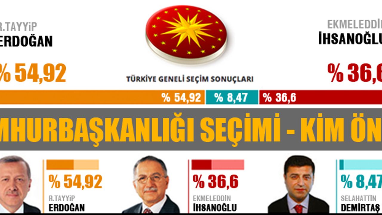 Sandıkların açılmaya başlandığı andan itibaren Ekmeleddin İhsanoğlu'nun oyu yüzde 38'i aşabilmiş görünmedi. Cumhurbaşkanı adayı Recep Tayyip Erdoğan 58 ildeönde giderken Ekmeleddin İhsanoğlu ise 13 ilde yarışı birinci sırada götürdü.