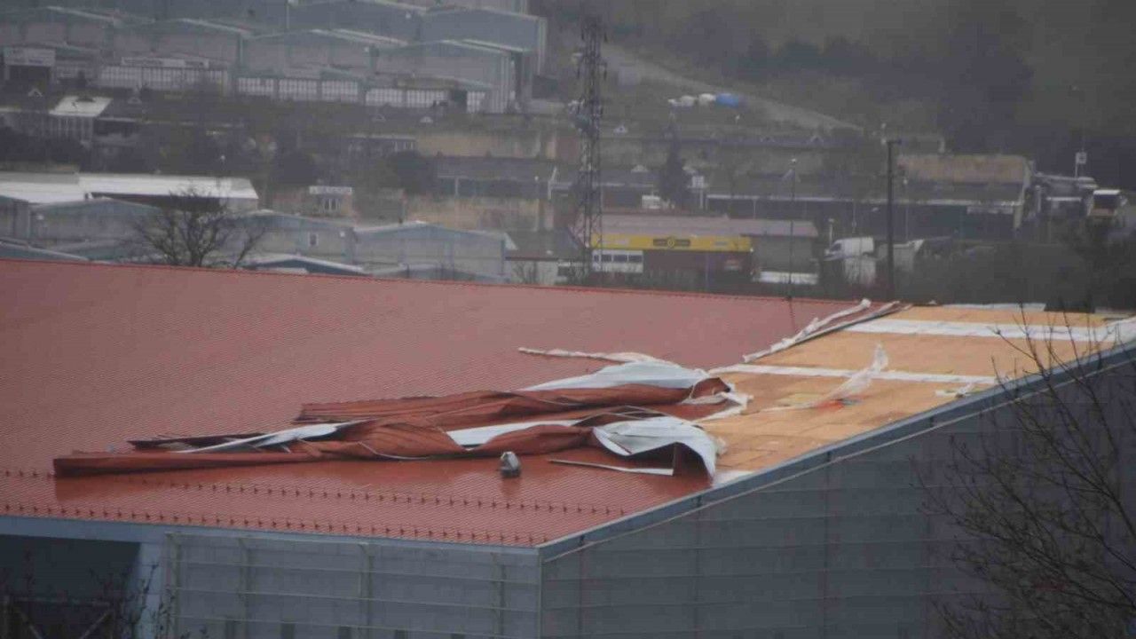 Sinop’ta saatteki hızı 75 kilometreye ulaşan fırtınada bir spor salonunun çatısı uçarken, balıkçılar limana sığındı.