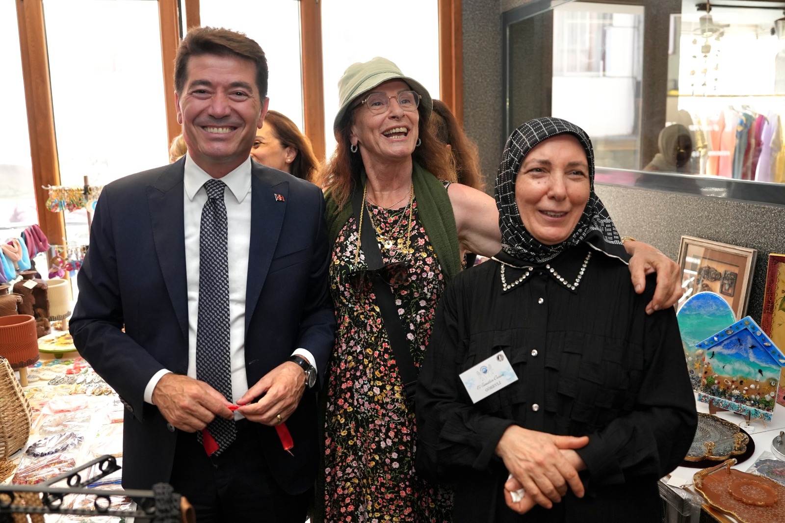 Konuşmaların ardından El Sanatları Çarşısı’nın açılış kurdelesi kesildi. Ziyaretçilerle birlikte çarşıyı gezen Başkan Ahmet Kaya, üretici kadınların ürünlerini inceleyerek alışveriş yaptı. Başkan Kaya, CHP Kadın Kolları Başkanı Asu Kaya’ya çarşıda satılan el dokuması bilekliklerden hediye etti.