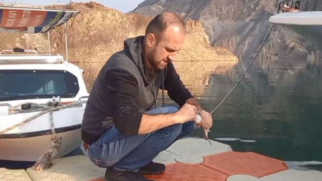 Türkiye’nin en büyük barajının gövdesinde balık tuttuklarını ifade eden Amatör olta balıkçısı Soner Demirci, “Yusufeli eski yerleşim yerinin hemen üzerindeyiz şuan. Kendimize böyle güzel bir faaliyet gerçekleştirdik. Amatör balıkçılık olarak amatör teknemizde balık tutuyoruz” ifadelerini kullandı.