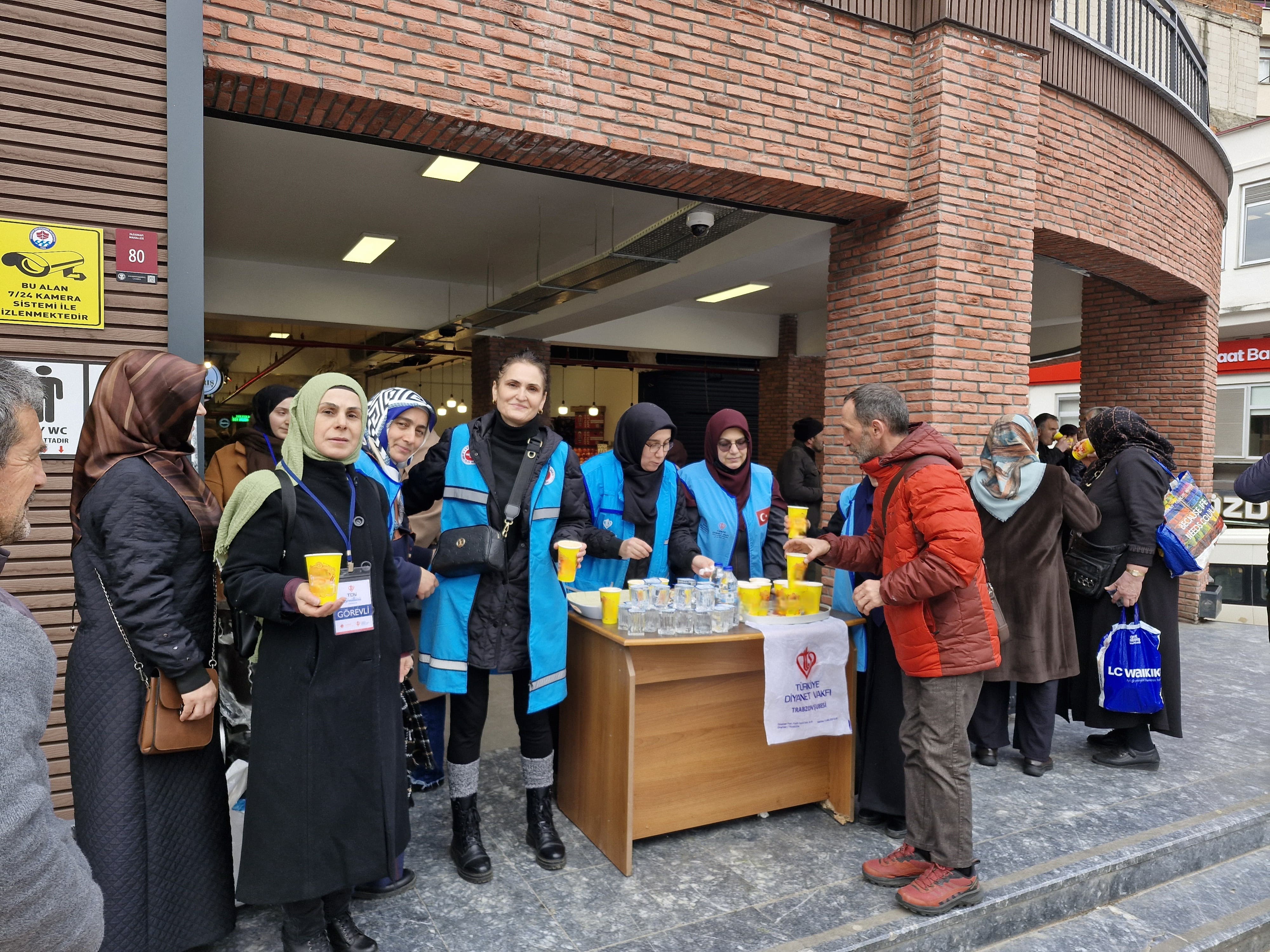 Türk Diyanet Vakfı (TDV) Trabzon Şubesi Kadın Kolları İyilik Gönüllüleri, genç gönüllülerle birlikte "İçimizi Isıtan İyilik" projesi kapsamında, Trabzon Büyükşehir Aşevi'nde hazırlanan çorbaları Ortahisar Kadınlar Pazarı’nda pazarcılara, esnafa ve alışveriş için gelen vatandaşlara ikram etti.