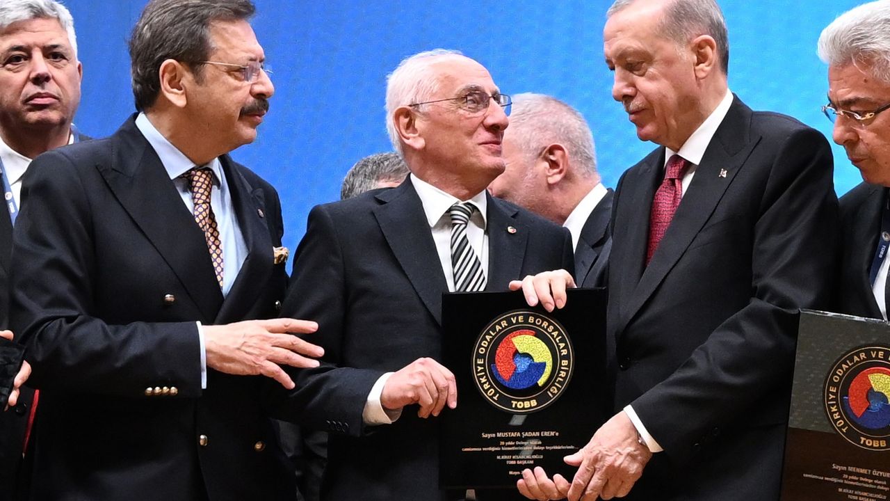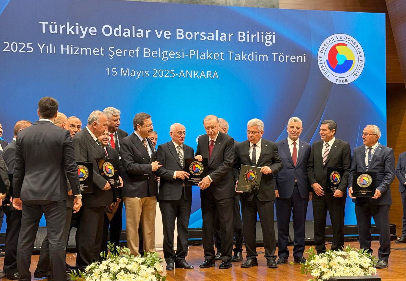 Konuşmaların ardından Cumhurbaşkanı Erdoğan ve TOBB Başkanı M. Rifat Hisarcıklıoğlu, Hizmet Şeref Belgesi ve plaketleri verdi. TOBB çatısı altında delege olarak 20. yılını dolduran TTSO Meclis Başkanı M. Şadan Eren de plaketini Cumhurbaşkanı Erdoğan'ın elinden aldı.