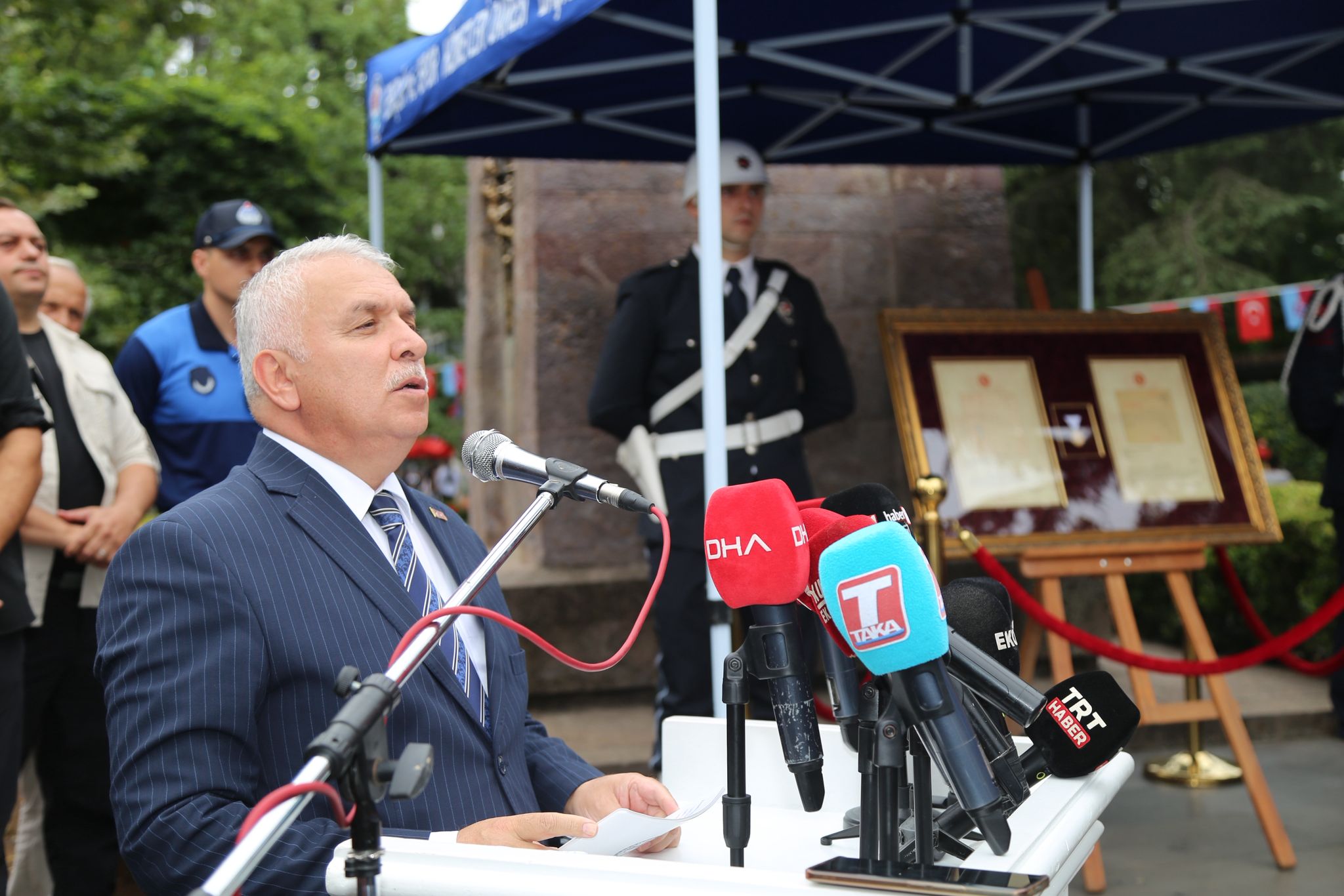 Düzenlenen törene Trabzon Valisi Aziz Yıldırım, Trabzon Büyükşehir Belediye Başkanı Ahmet Metin Genç, CHP Trabzon Milletvekili Sibel Suiçmez, Karadeniz Teknik Üniversitesi Rektörü Hamdullah Çuvalcı, Trabzon Üniversitesi Rektörü Emin Aşık Kutlu, AK Parti Trabzon İl Başkanı Sezgin Mumcu, MHP Trabzon İl Başkanı Tolgay Sivrikaya, CHP Trabzon İl Başkanı Mustafa Bak, Yeniden Refah Partisi İl Başkanı Süleyman Pulat, Büyük Birlik Partisi İl Başkanı Adem Aydın, eski Bakan Erdoğan Bayraktar, Trabzon eski Belediye Başkanı Volkan Canalioğlu ve ilçe belediye başkanları katıldı.