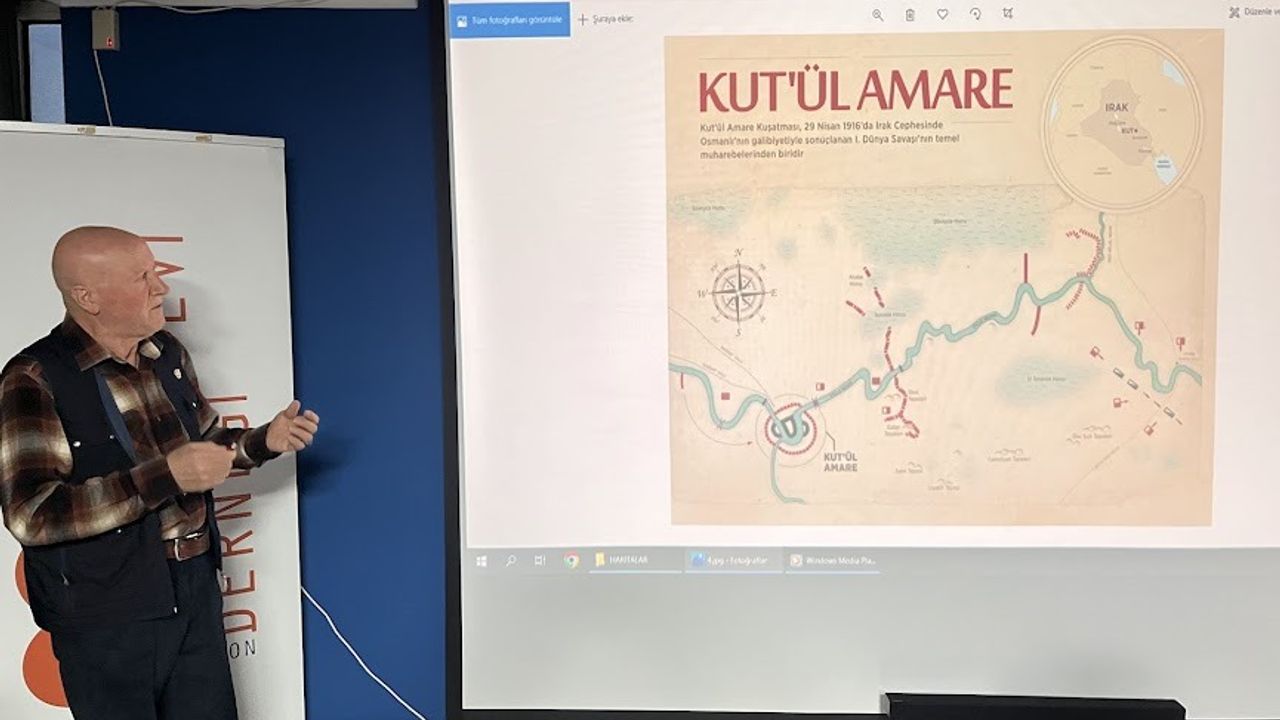Mümin AYDIN sunumda yaptığı açıklamada: “Kut’ül Amare Zaferi Türk Ordusunun Irak'ın Kut bölgesinde ingilizlere karşı kazandığı büyük bir zaferdir. Kut’ül Amare Zaferi, Türklerin tarihe destansı kahramanlıkla adını yazdırdığı en büyük zaferlerindendir. Bağdat’ın 170 km. güneyinde yer alan Kut’ül Amare kasabası, Birinci Dünya Savaşı’nda tarihte görülen en mühim muharebe ve zaferlerden birine şahit olmuştur. 1915 yılının sonunda Halil Paşa komutasında Kut’ül Amare’yi kuşatan Osmanlı birlikleri, 4 ay 23 gün süren kuşatmadan sonra 29 Nisan 1916 tarihinde İngiliz Ordusu’na karşı galip gelerek Kûtü’l-Amâre kasabasını ele geçirmiş ve General Sir Charles V. F. Townshend komutasındaki 5 general, 481 subay ve 13 bin 300 erden oluşan İngiliz birliklerinin tamamını esir almıştır. Teslim alınan bu orduyu kurtarmaya gelen İngiliz kuvvetleri de 30 bin zayiat vererek geri dönmüşlerdir.