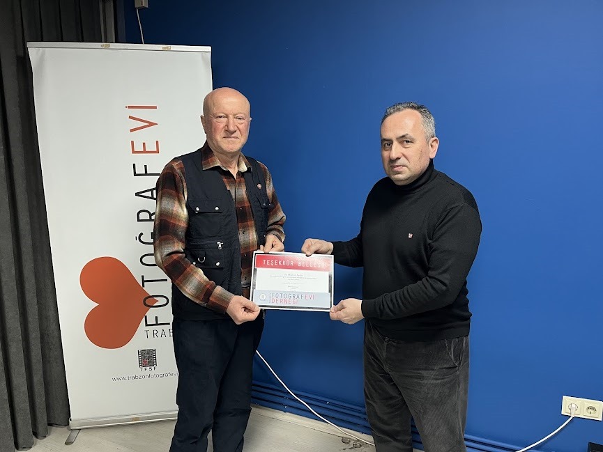 Samimi bir ortamda gerçekleşen sunum sonunda Fotoğraf Evi Derneği Başkanı Şenol Erdener tarafından Mümin Aydın’a teşekkür belgesi verildi.