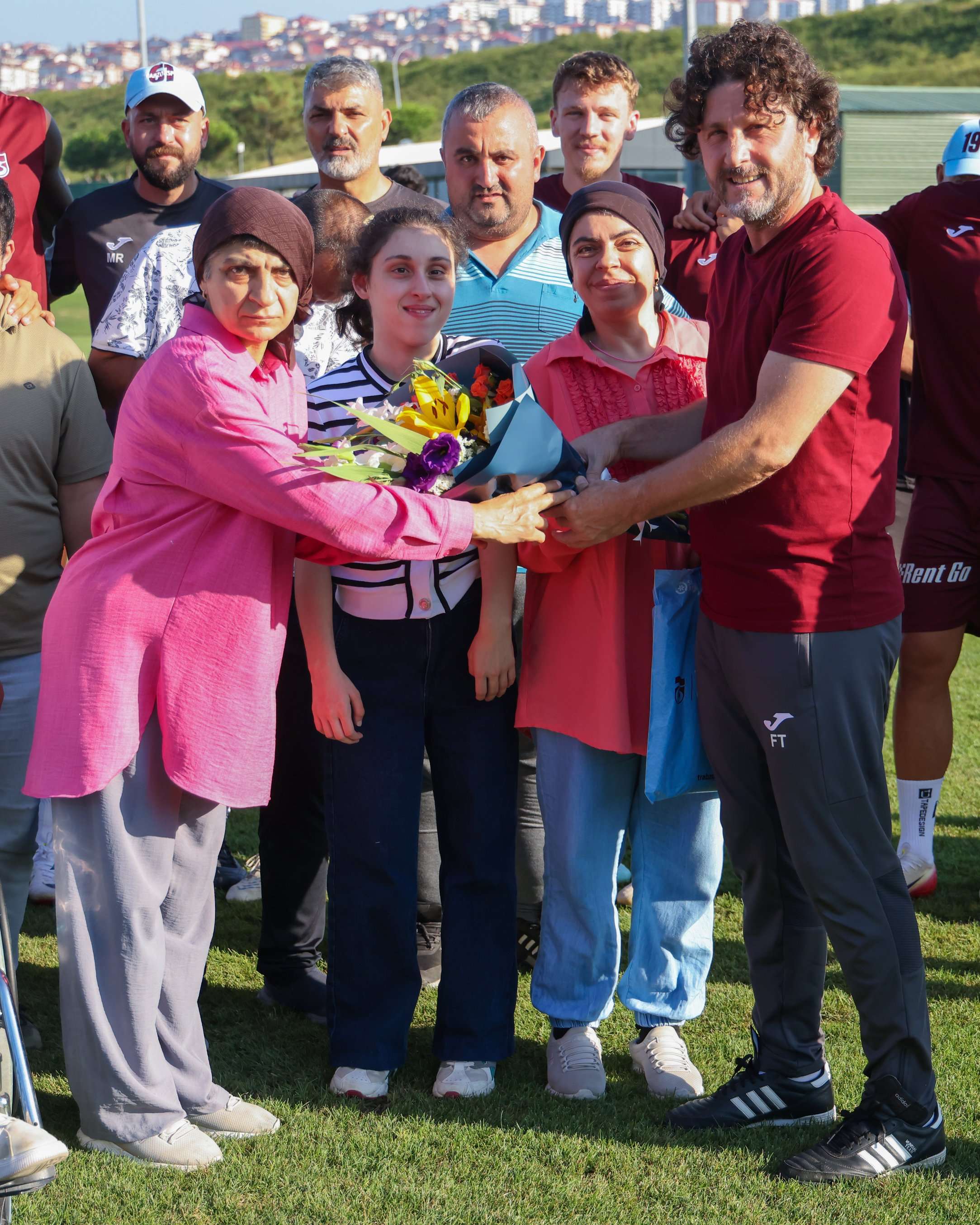 Ziyaret kapsamında engelli bireyler, Teknik Direktör Fatih Tekke’ye çiçek ve hediye takdim ederken, futbolcular da kendilerine çeşitli hediyeler sundu.