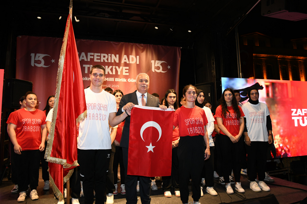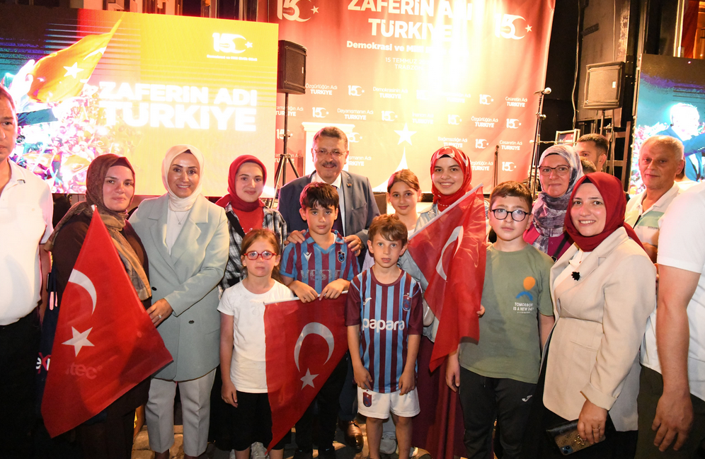 Trabzon Valiliği himayesinde, Büyükşehir Belediyesi’nin destekleriyle düzenlenen 15 Temmuz Demokrasi ve Milli Birlik Günü Anma Programı’na Trabzon Valisi Aziz Yıldırım ve Büyükşehir Belediye Başkanı Ahmet Metin Genç ile eşlerinin yanı sıra kent protokolü, siyasi parti temsilcileri ve çok sayıda vatandaş katıldı. Saygı duruşu ve İstiklal Marşı’nın okunması ile başlayan anma programı, Kur’an-ı Kerim tilaveti ile devam etti. Sancak koşusunun yer aldığı anma programında “15 Temmuz” konulu video gösterimi gerçekleştirildi. Trabzon İl Müftülüğü Tasavvuf Musikisi Korosu’nun hazırladığı dinletinin ardından Trabzon Büyükşehir Belediyesi Kanuni Mehter Takımı konser verdi. 15 Temmuz’un sadece bir darbe değil memleketi işgal projesi olduğunu vurgulayan Büyükşehir Belediye Başkanı Ahmet Metin Genç, “Emperyal güçler, bizi kendi sınırlarımız içine hapsetmek istediler. Yıllarca darbelerle bizi sindirmeye çalıştılar. Ama 15 Temmuz gecesi bu millet, vatan sevgisini imandan bilen evlatlarıyla bu hain girişime dur dedi. 251 şehidimizle, 2 bin 193 gazimizle bu ihanet püskürtüldü. Tankın önüne yatan, bedeniyle karşı koyan gazilerimizle gurur duyuyoruz. Bu millet ölümü ölümle korkutan bir millettir, Allah’ın izniyle bu millete hiçbir şey olmaz” dedi.