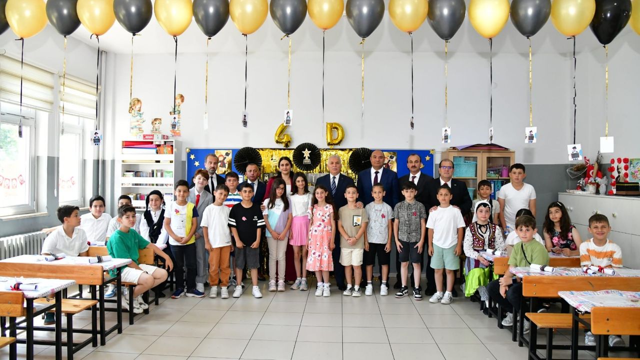 Sınıfları gezerek öğrencilerle birebir ilgilenen Vali Yıldırım, karne ve başarı belgelerini takdim ederek çocuklara yaz tatili için iyi dileklerde bulundu.