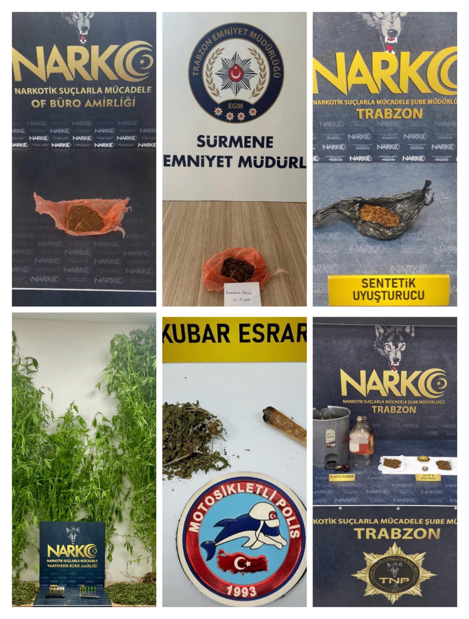 Bir miktar sentetik kannabinoid (Bonzai), metamfetamin, kokain, sentetik kannabinoid hammaddesi, esrar, 30 adet sentetik ecza, 196.000 adet Sentetik Ecza imalatında kullanılan kapsül, 88 kök kenevir bitkisi, kenevir bitkisi tohumu, 2 adet esrar öğütücü, 1 adet esrar kullanma aparatı, uyuşturucu kullanımına yarayan alüminyum folyo ele geçirilmiş olup, 34 şahıs hakkında adli tahkikat başlatılmıştır.