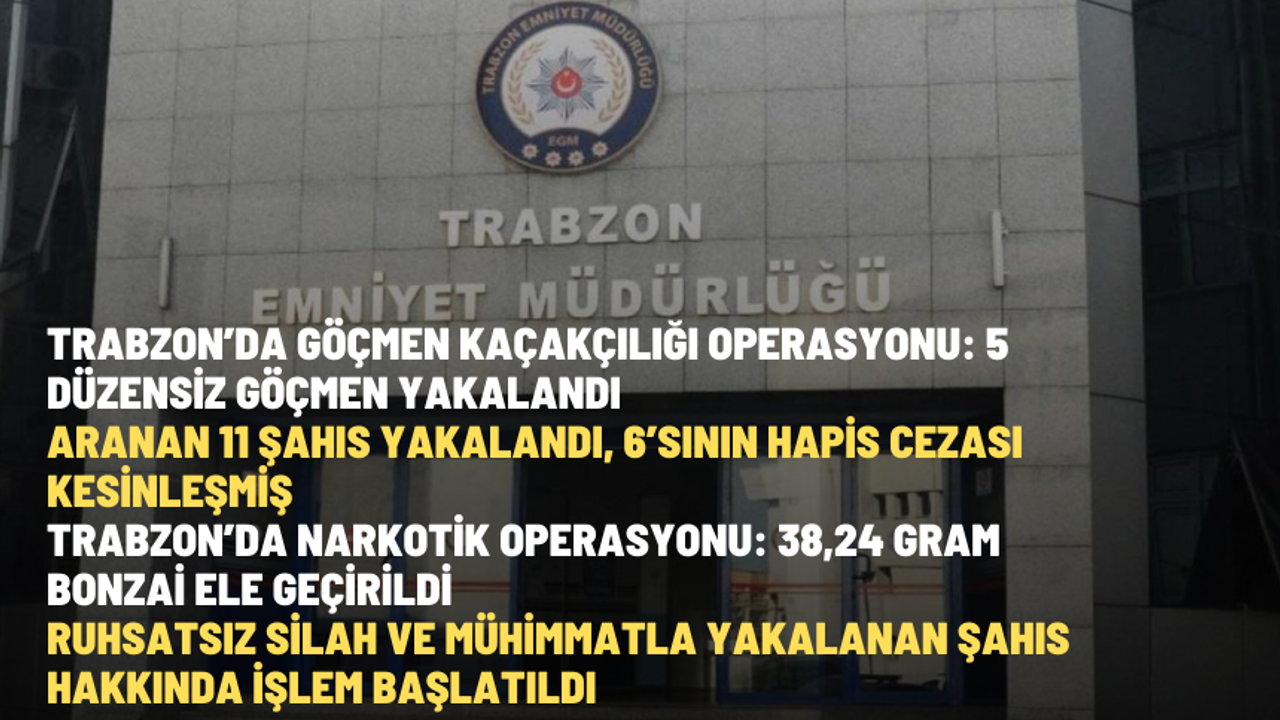 Trabzon Valiliğine bağlı İl Emniyet Müdürlüğü birimlerince 19.02.2025 günü yapılan çalışmalar neticesinde;