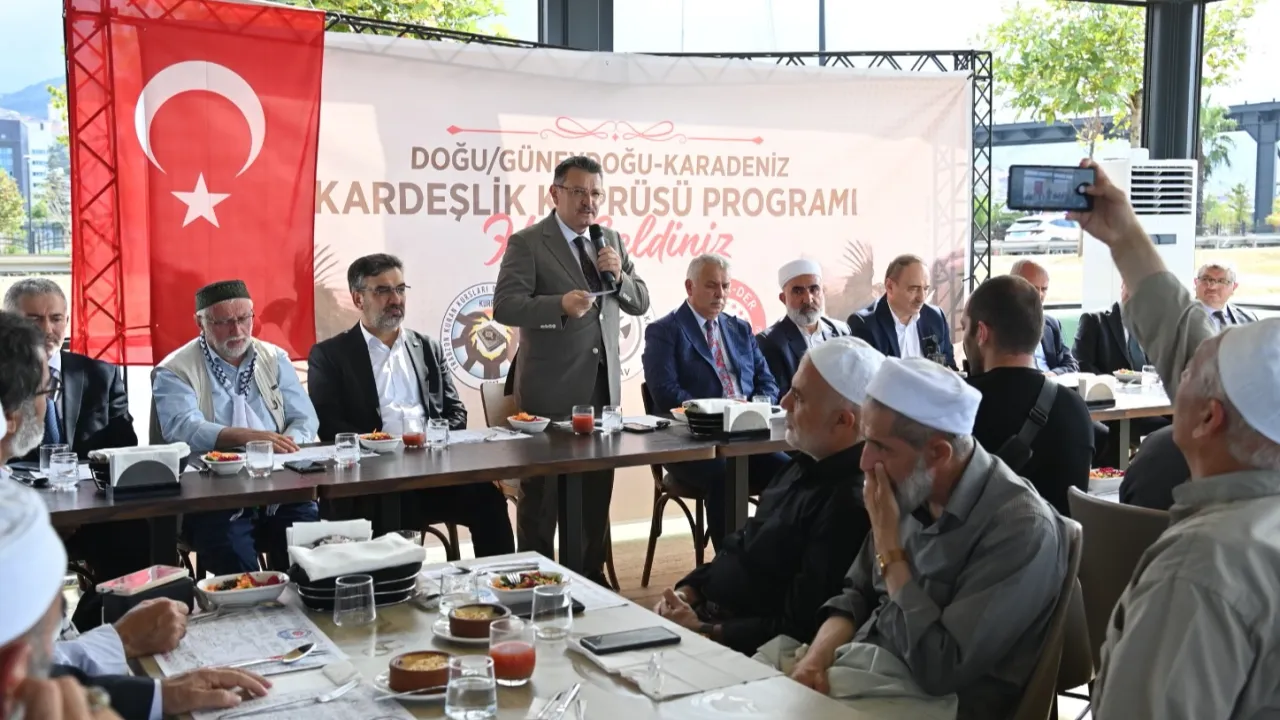 Trabzon Büyükşehir Belediye Başkanı Ahmet Metin Genç, Din Görevlileri Birliği Derneği, Medrese Alimleri Vakfı ve Trabzon Kur’an Kursu Dernekleri Federasyonu iş birliğiyle düzenlenen 18'inci Güneydoğu’dan Karadeniz’e Kardeşlik Köprüsü programına katıldı.TRABZON (İGFA) - Mendirek Kafe Restoran’da gerçekleşen programda Trabzon Valisi Aziz Yıldırım, eski bakanlar Faruk Nafiz Özak ve Mehmet Cahit Turhan, Diyanet İşleri Başkanlığı Cami Hizmetleri Daire Başkanı Turgut Erhan, İl Milli Eğitim Müdürü Hasan Uygun, Doğu ve Güneydoğu Anadolu’dan gelen din görevlileri, imam hatipler ve kanaat önderleri yer aldı.
