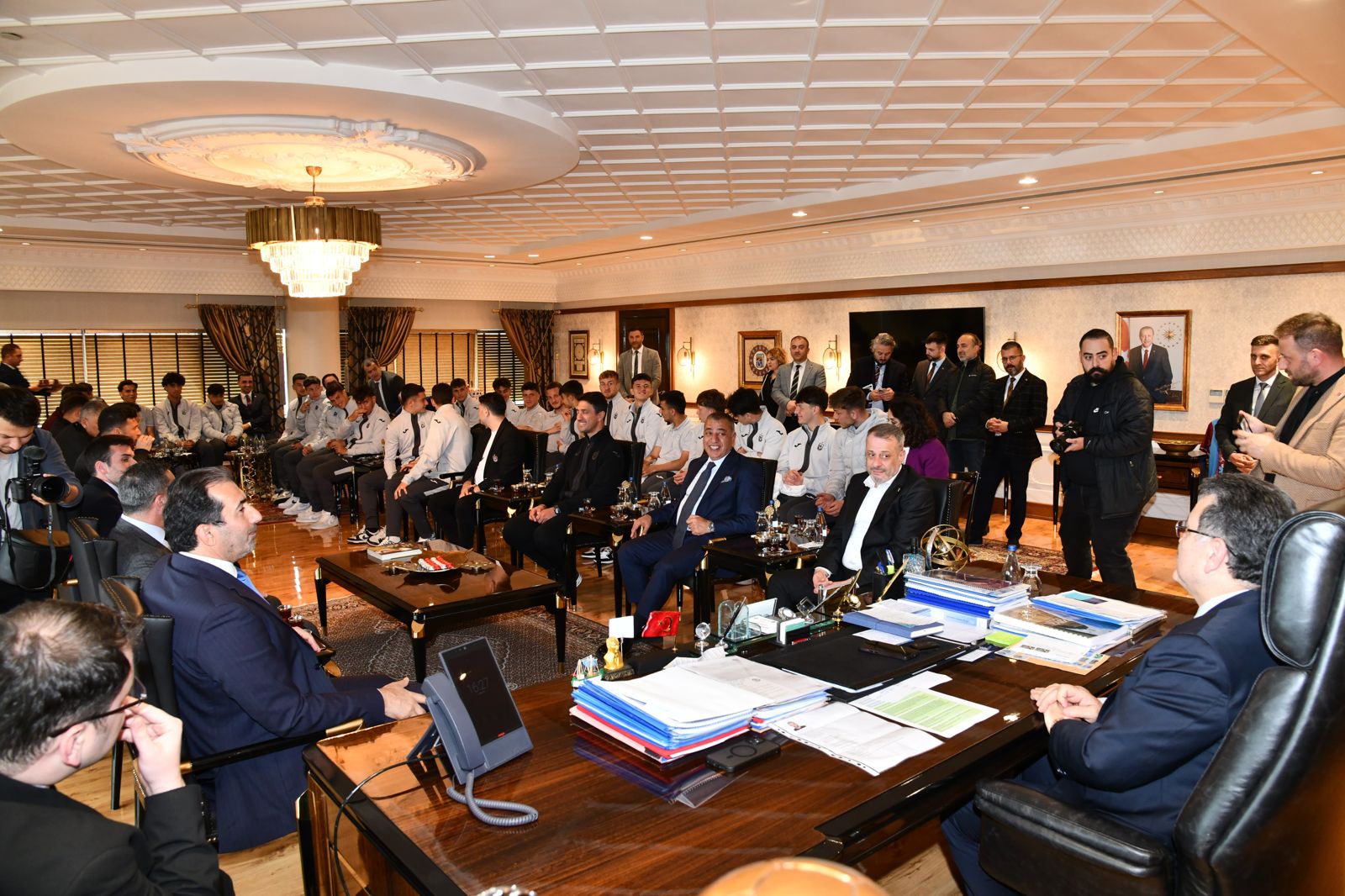 Trabzonspor Kulübü Asbaşkanı Zeyyat Kafkas ise, teknik heyet ve oyuncuların yanı sıra bu süreçte destek olan tüm paydaşlara teşekkür ederek, “Bu hikayede sahadaki kahramanlarımızı artık tüm dünya tanıyor. Ancak bu sürece sahada ve saha dışında çok önemli katkı sunan ve görünmeyen kahramanlar da vardı. Bu nedenle öncelikle Sayın Bakanımız Abdulkadir Uraloğlu Bey’e çok teşekkür ediyorum; sürecin başından sonuna kadar her konuda yanımızda oldu. Büyükşehir Belediye Başkanımız Ahmet Metin Genç Bey zaten Trabzonspor’la yatıp Trabzonspor’la kalkıyor; ona ne kadar teşekkür etsek azdır. Turnuva sürecinde Spor Bakanımız Osman Aşkın Bak Bey de bizlerle oldu, şampiyonluk primi sözünü verdi ve oyuncularımıza ödüllerini iletti. Ayrıca her zaman yanımızda olan Sayın Berat Albayrak’a ve bizi yalnız bırakmayan Faruk Nafiz Özak bakanımıza da teşekkür ediyorum. Bu sadece bir başlangıç. Çocuklara hep şunu söyledim; siz kaybetmediniz, öğrendiniz. Çok başarılı bir süreç yaşadık. Herkese minnettarım” dedi. Başkan Genç, Ganita programının ardından futbolcuları ve teknik heyeti makamında ağırladı.